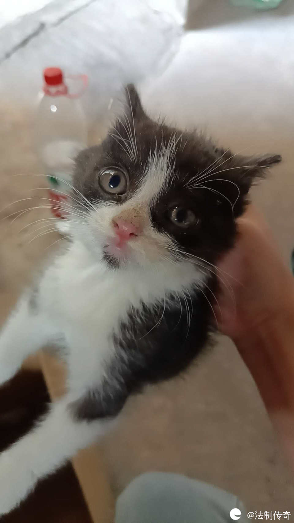刚捡到的奶牛小母猫,开脸比较正,貌似两月左右,能吃猫粮。未驱虫。免费领养。希望能找一个能负责,有条件,有爱心的家长,微信:TaTnTg_85