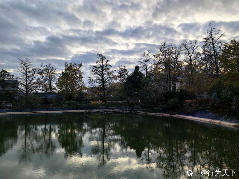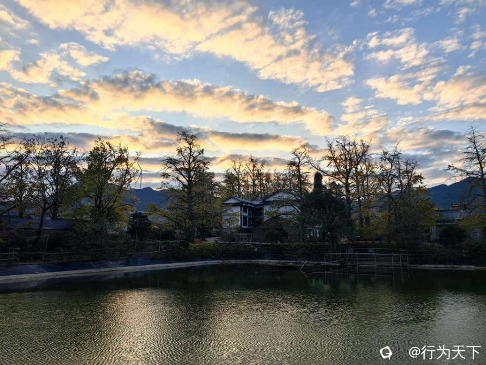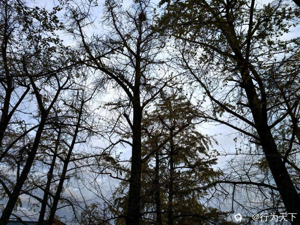 风起,金黄色的叶子瑟瑟作响,偶尔还能看到它们在随风飘落。那屋檐上、那草地上、池塘边一层层,到处都是金黄色的银杏叶,犹如进入了一个童话世界。