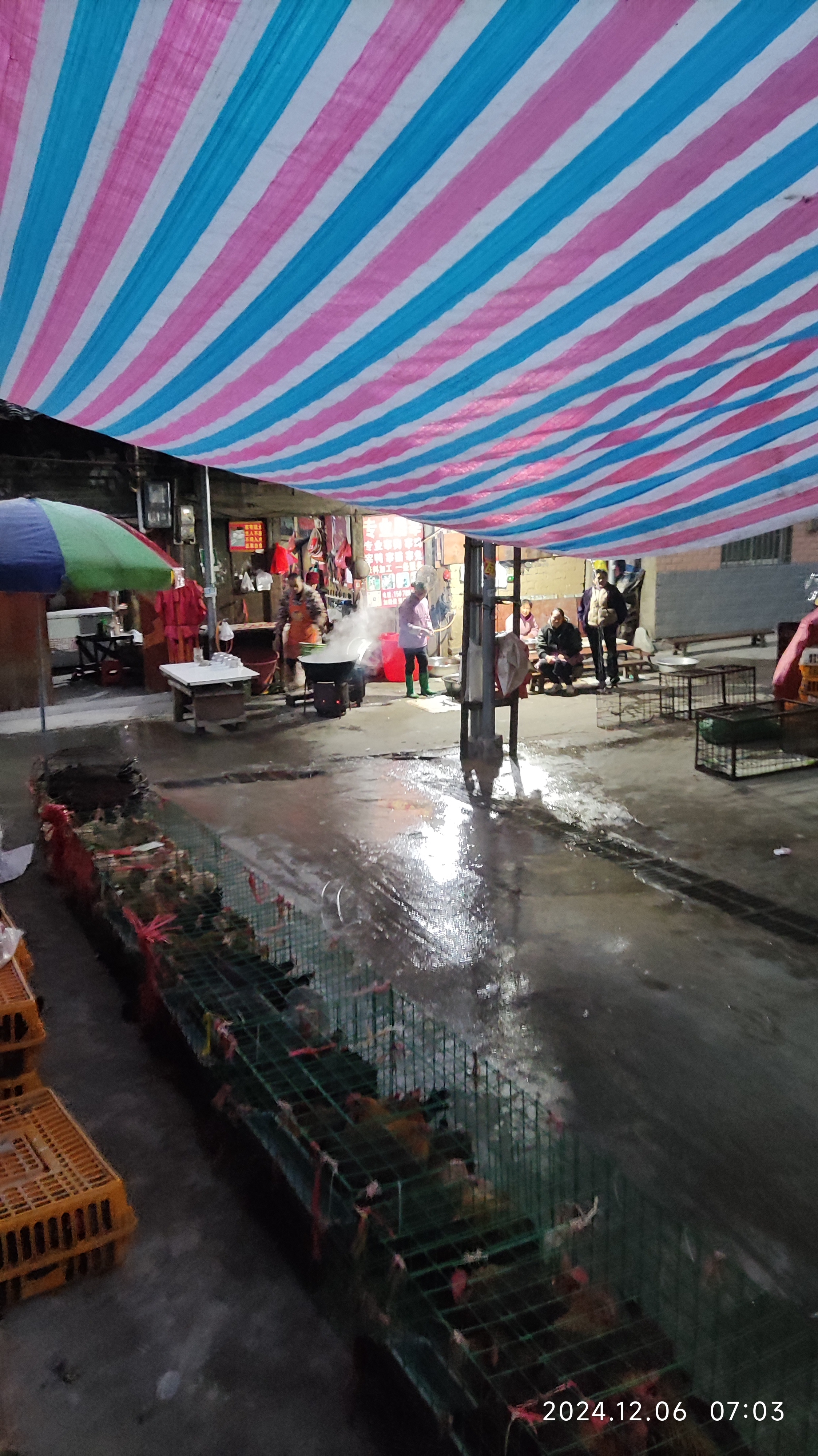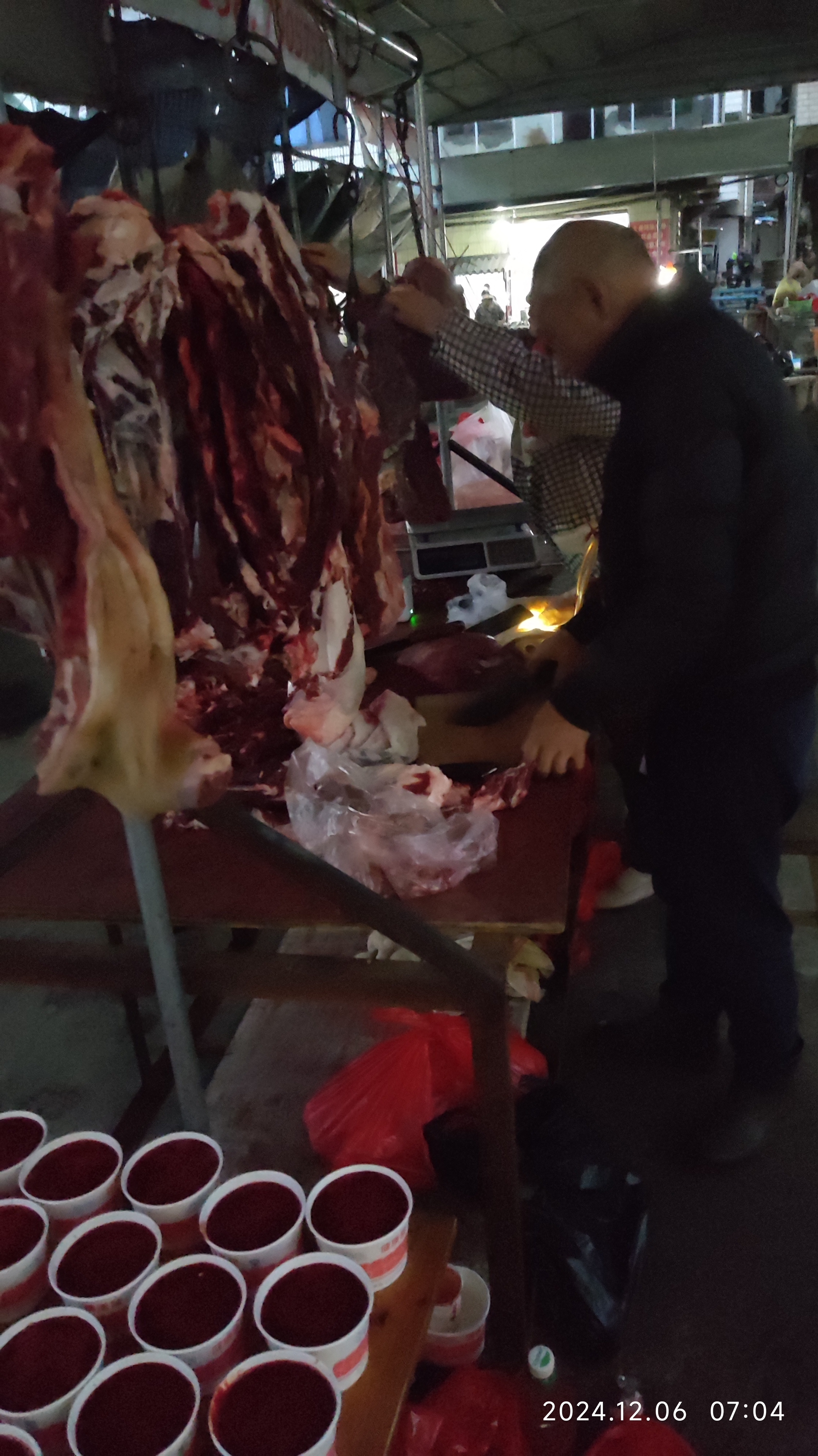 早上七点十几分了,天还是黑的。今天小雨,骑电单车冷手了,天亮得晚了,遇上阴天下雨,赶个圩,讲得险火要拿个电筒