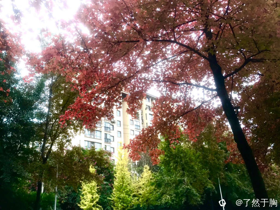 漫步于人行道上,穿行在红枫金杏相映如画之中,真是心旷神怡,让人留连忘返。