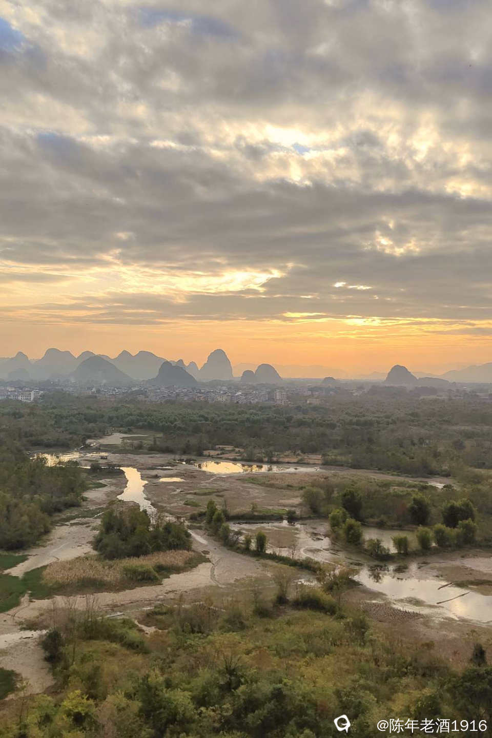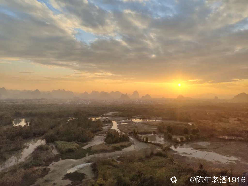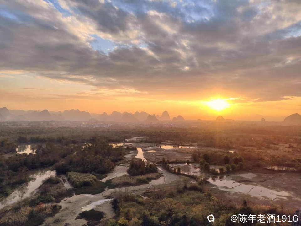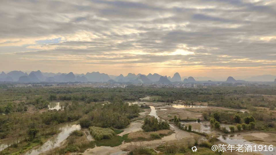 龙山,全程板子台阶拾级而上,没多久就上到山顶,尽管山不算高,但在湿地这里就龙山坐落中央,视野空旷,四周风光一览无余,但此时我的目光只放在夕阳方向。于是架好装备,静待落日晚霞上演......