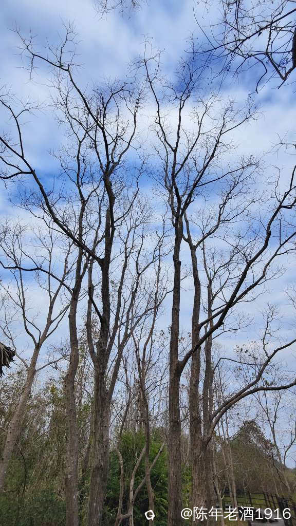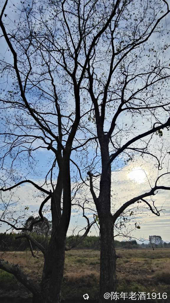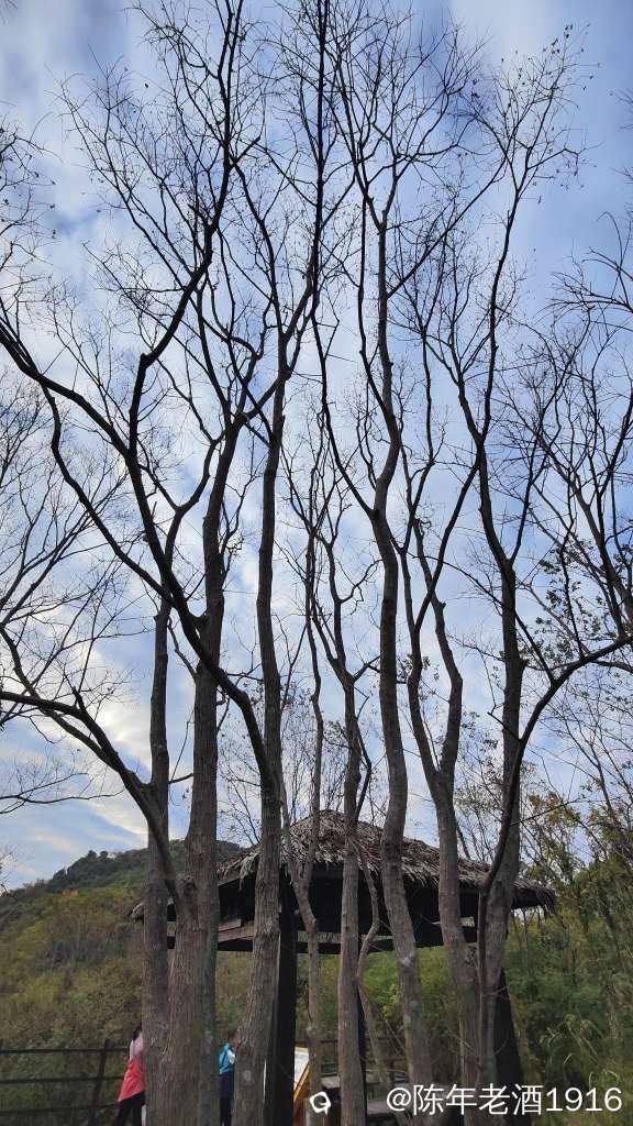 看到天空的云彩好看,于是急忙赶往龙山。这边的步道相对较好,能够让人放心的在上面走动,途中也遇到几波人来耍。往里走,两旁的乌桕树同样也是光板了,但在蓝天白云下也挺好看,就是红乌桕是无望了,只能顺着步道直达山顶去守着预感即将上演的落日晚霞。