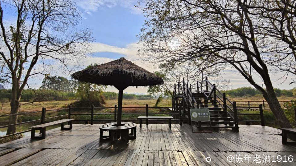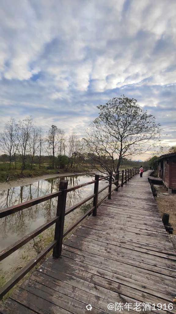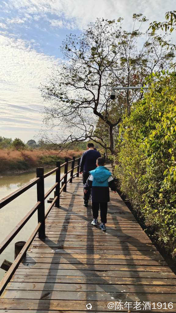 11月的最后一天,下午2:30左右,看着天气不错,于是临时决定去会仙湿地,一家人说走就走。此行的目的地是乾隆桥及龙山,所以凭印象直达目的地,将车停在停车场,便开启边走边看边拍之旅。
