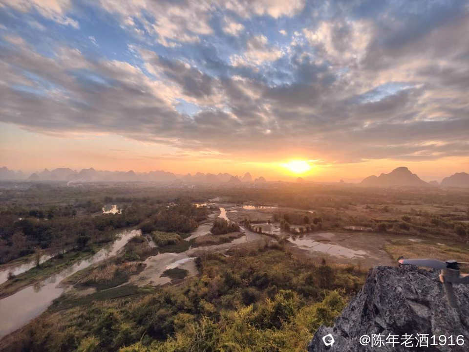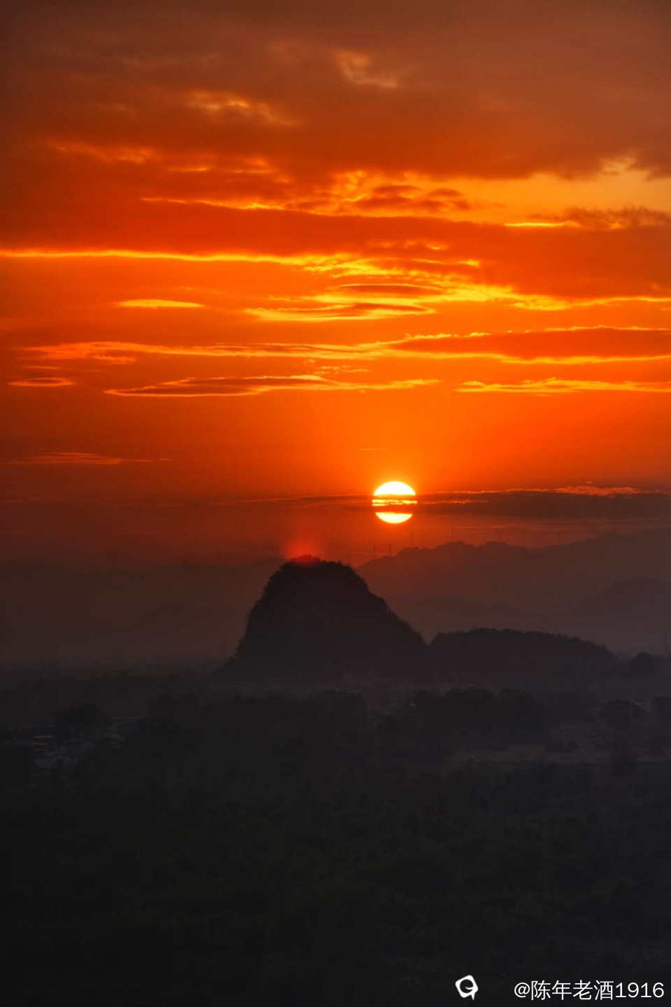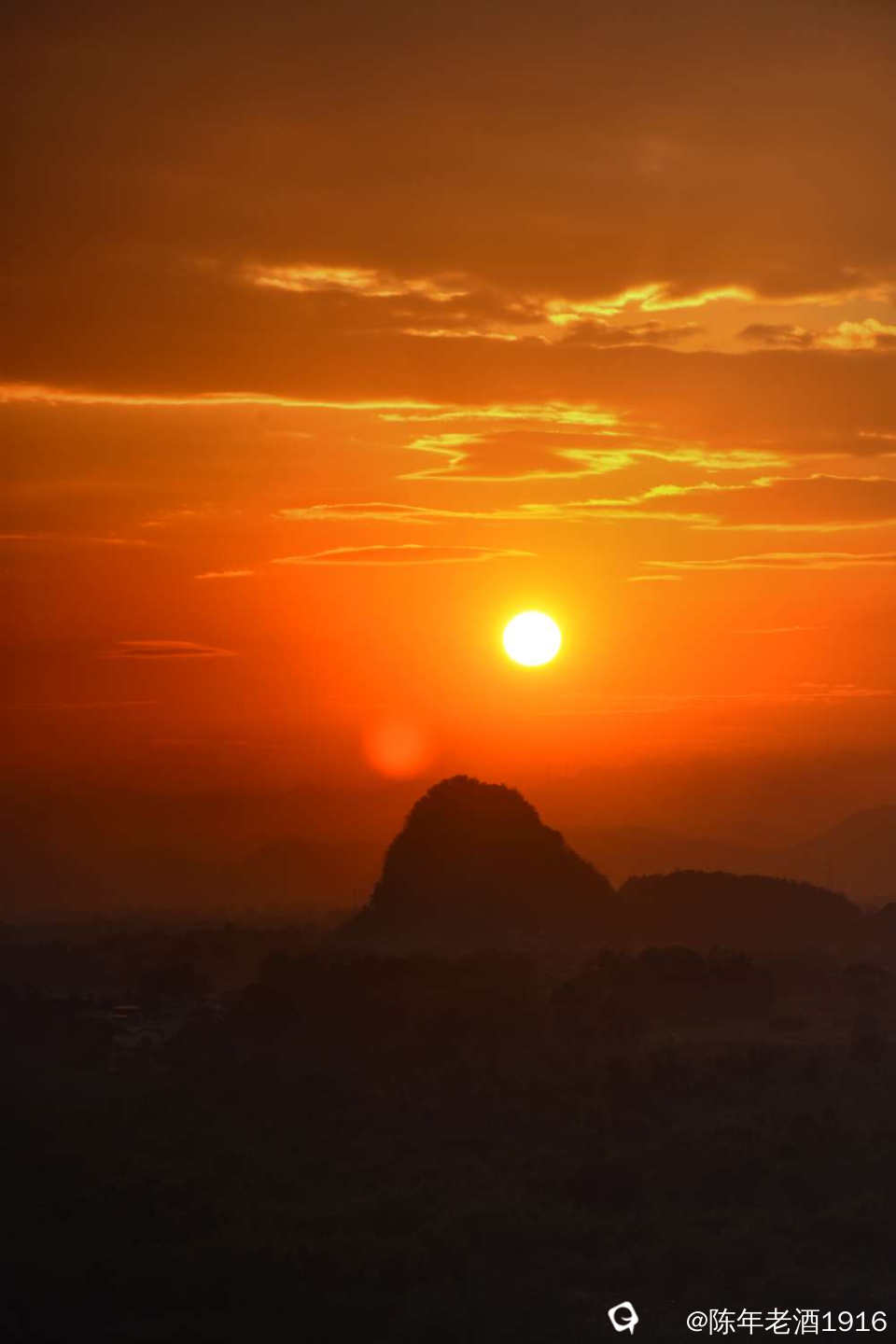 功夫不负有心人,风云变幻,随着太阳西下,悬日、晚霞如约而至。直到天快黑下来才不舍的下山离开,最终也就错过了第二道霞光