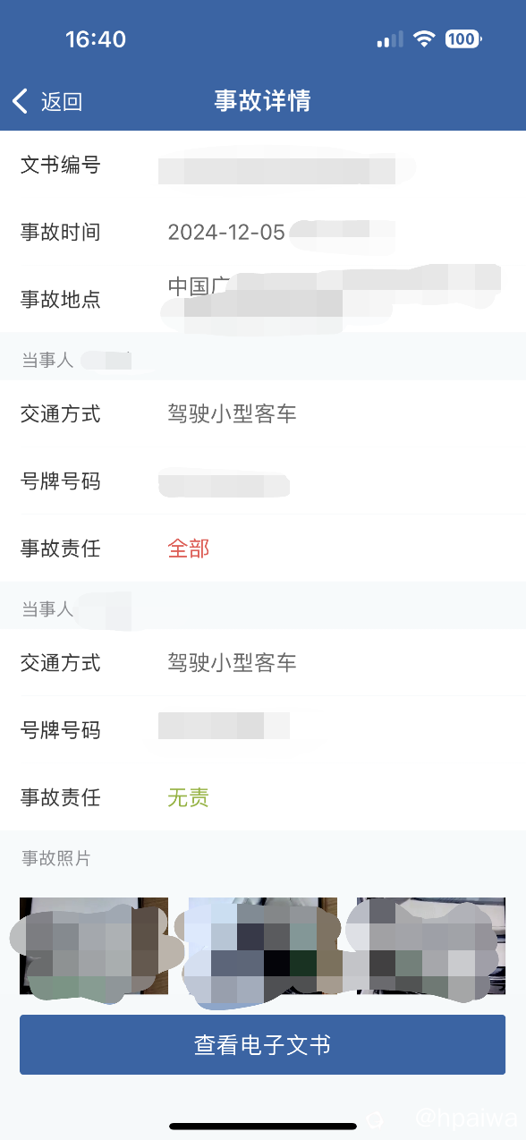 隔天去交警队处理事故认定书,对方车主一大串交通违章未处理,一辆10来万的纯电车,2024年的保险费涨到了9800元。真的是服了!