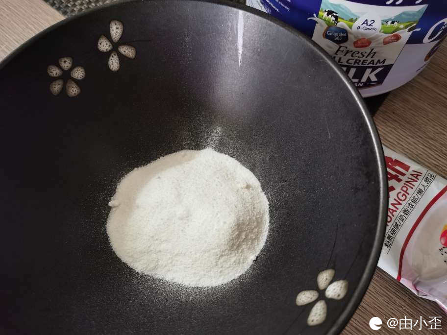 150克纯牛奶(奶粉代替),将其搅拌均匀。