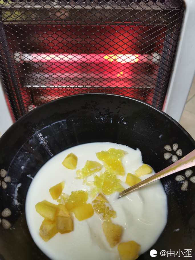 在有太阳的午后,烤着火挖着双皮奶,真是太爽不过了!