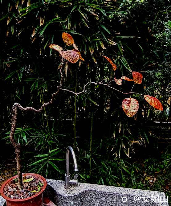 独在庭院赏叶黄