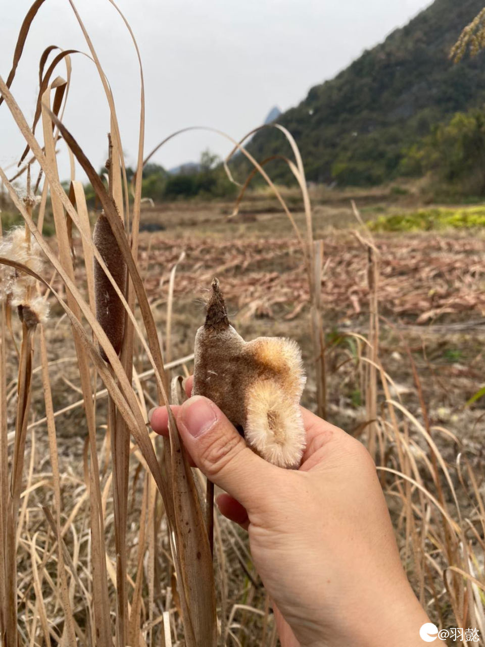 然后终于下到山脚 还去田边玩了水蜡烛 很解压呀 哈哈哈 娃说这个叫火腿肠
