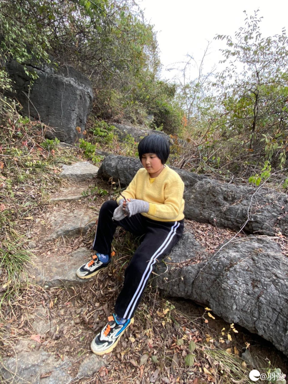 娃太久没有爬山锻炼 一会就累的不行 要坐着休息 看来以后要多多锻炼才可以了