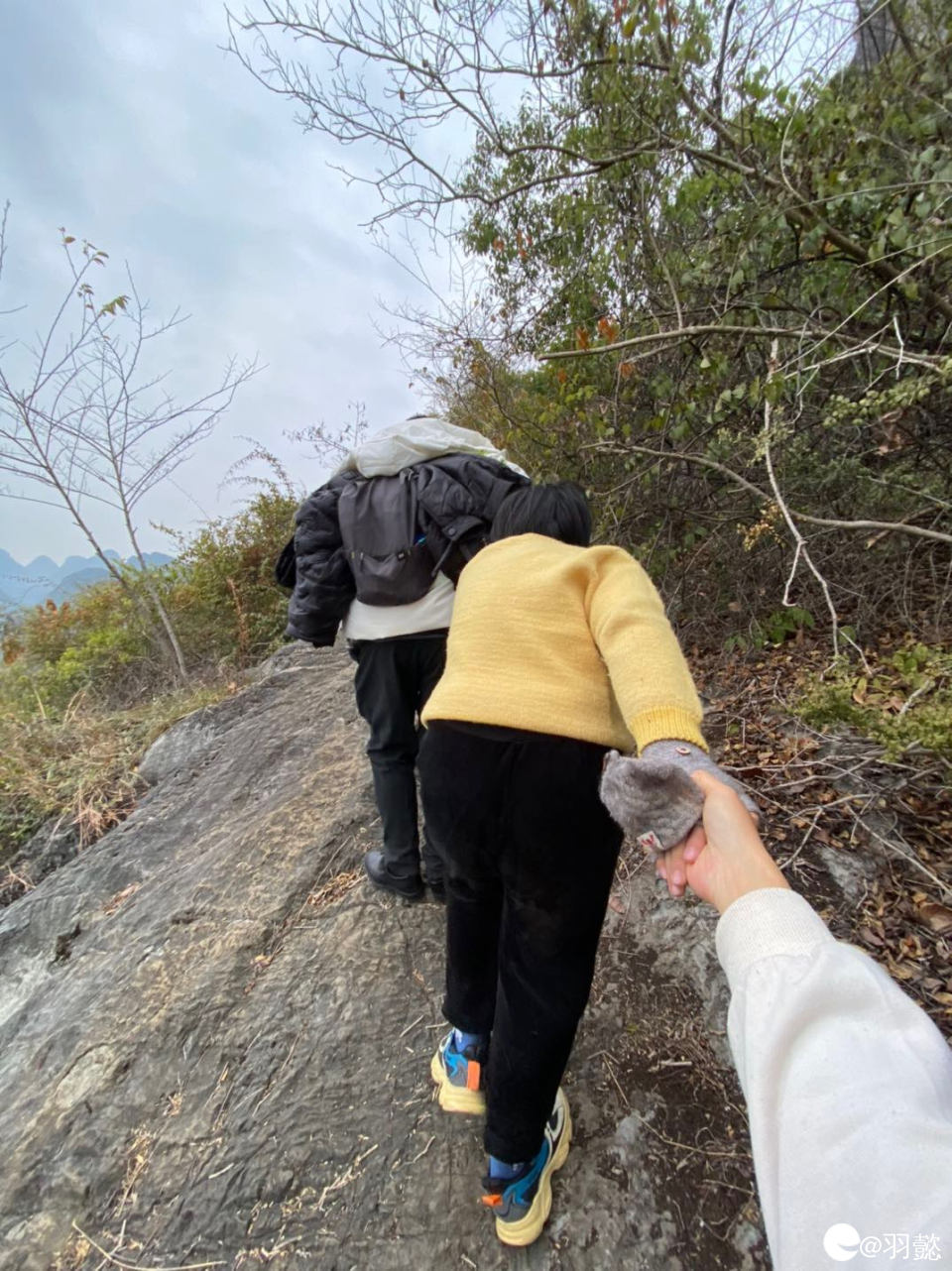返程 都说上山容易下山难 果真 一路靠着娃爸拉着慢慢往下走 一堆的衣服背包也都给娃爸负重 哈哈哈 表扬一下