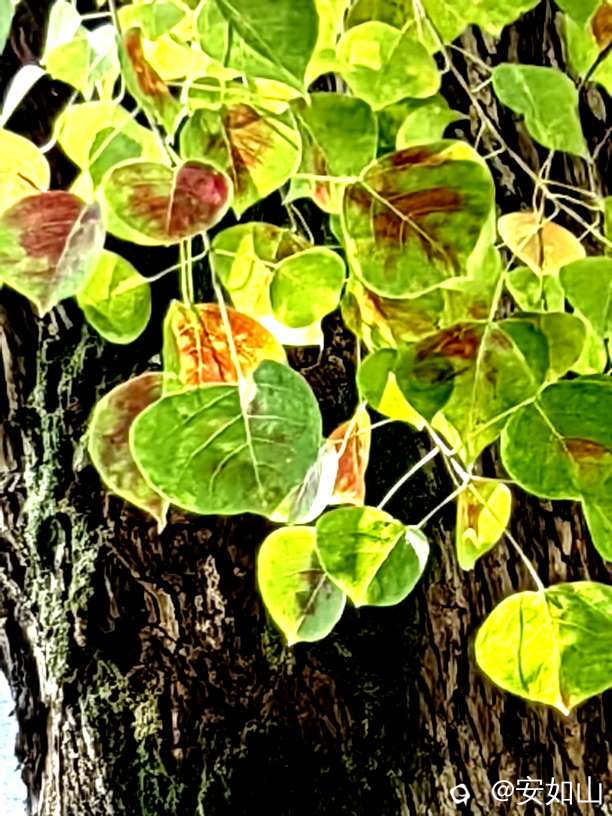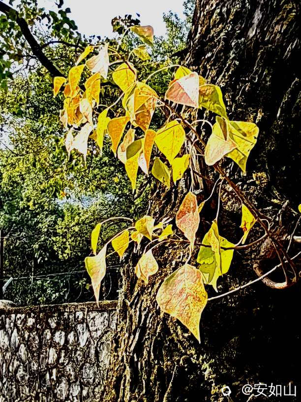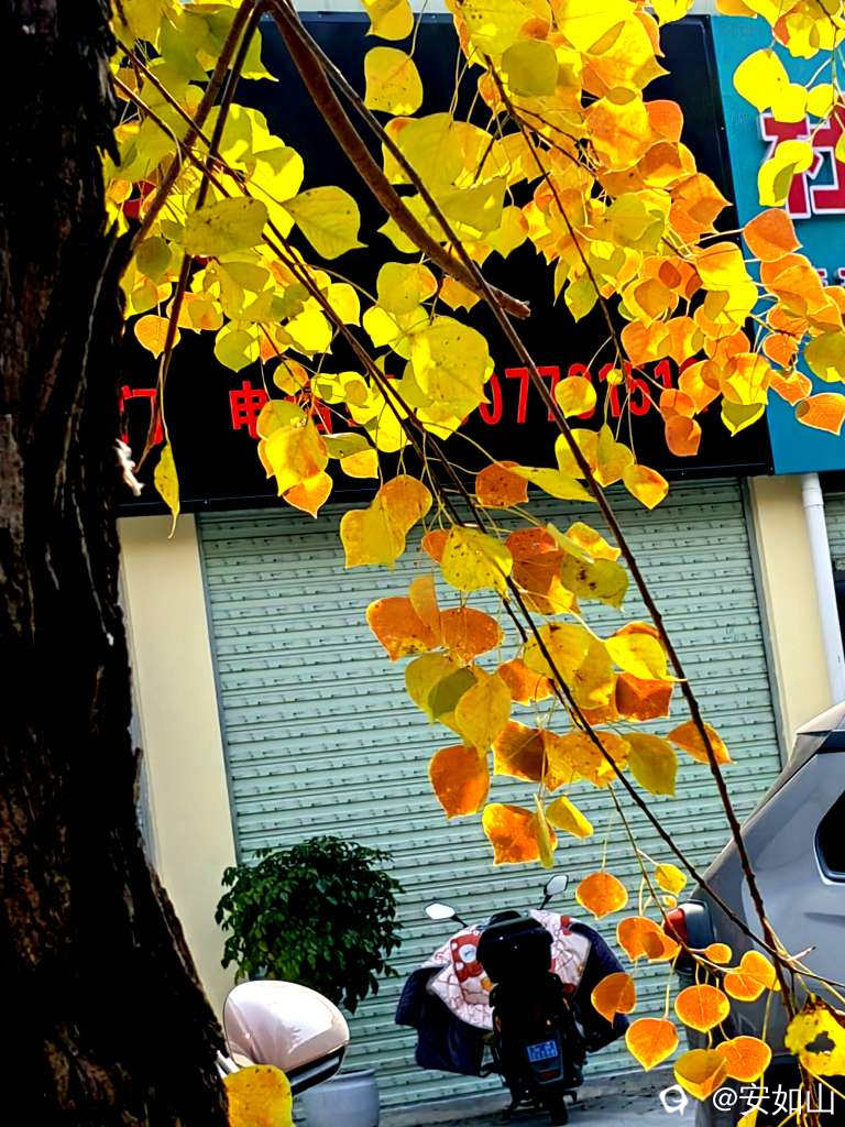 今天走巾山路,路边的乌臼树叶在阳光下五彩缤纷,我拿起手机照像,微风吹拂,看着看着我眼前的乌臼叶都变成了金币铜钱,乌臼子分明就是银锭,一直在我眼前晃,君子爱才也爱财,我真的是醉了,钱埋我也……