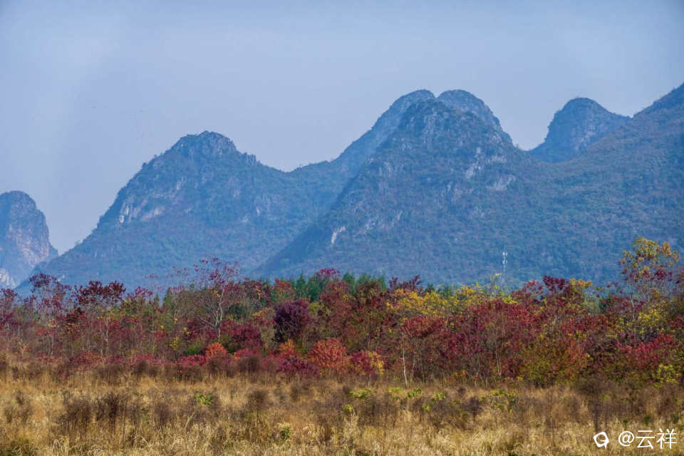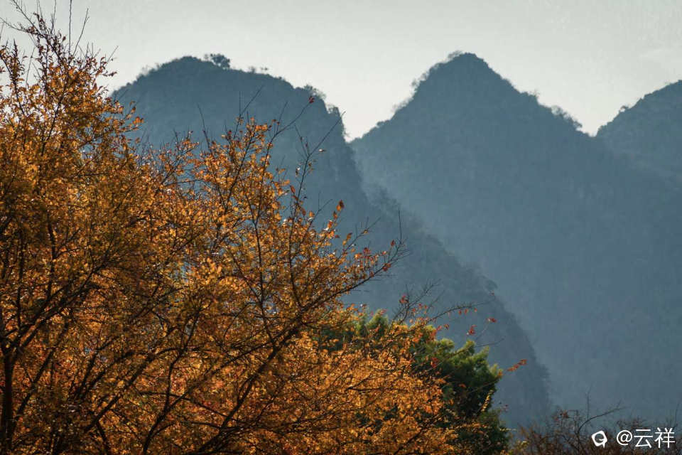 这些天听讲好多人克甲宅村附近拍乌桕红叶。我就不克凑热闹了,在芦笛岩后面的演波村就有一片乌桕红叶,拍起效果也不错。分享一下