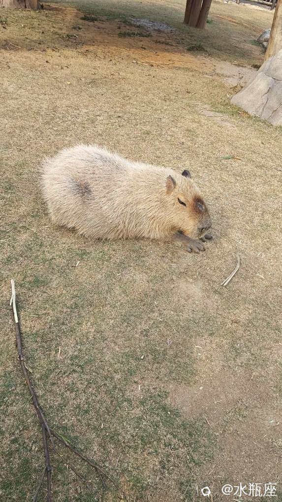 卡皮巴拉在悠闲的晒太阳