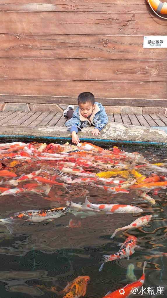 深海两万里门口的这个鱼池里被投喂的锦鲤完全不怕人,人一过去就张嘴。