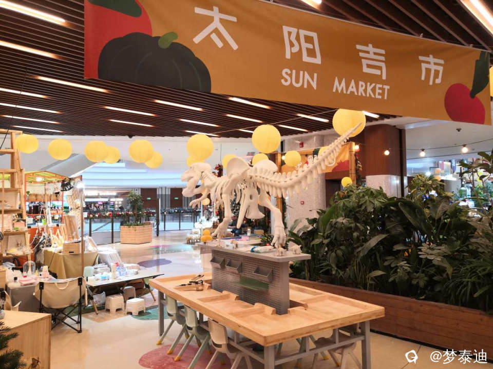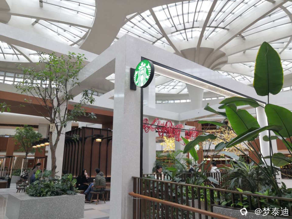 太阳宫的5—7层是超级中庭,是商场最具魅力,最引人入胜的空间。从咖啡厅顺着扶梯走到中庭,抬头能看见荷花穹顶,眼前是很潮流的市集。