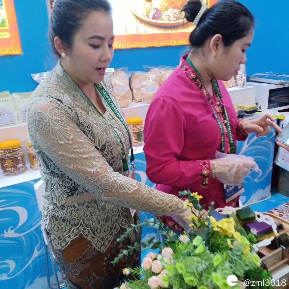 兴隆农场的印尼华侨后辈在展会上,售卖印尼小吃,斑斓糕,千层蛋糕等。
