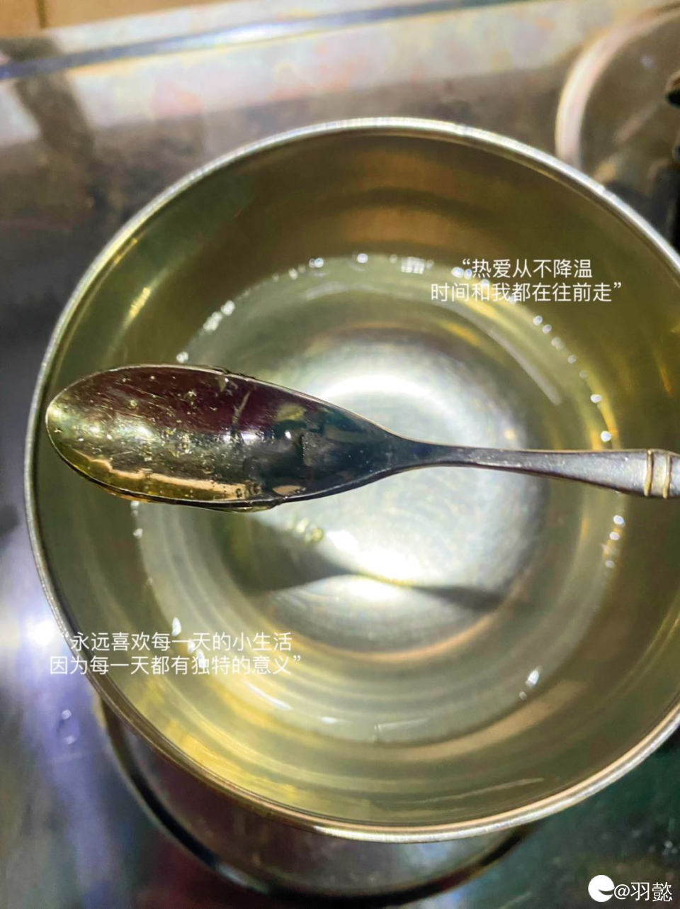 期间看着差不多就拿小勺子沾一点糖然后让冷水中试一下