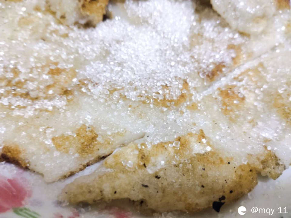 在没有酥糖的时候、也可以舀白沙糖,要趁热放入白砂糖才容易融化,灰常好吃饿