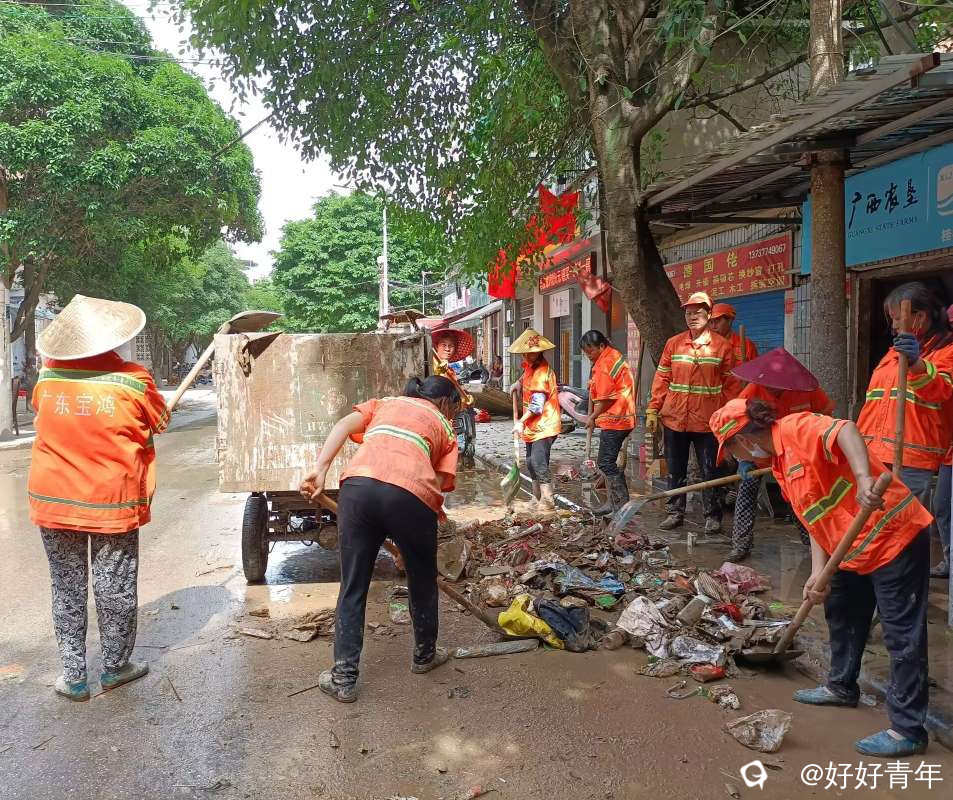 2024年6月,洪水退后在清淤工作的环卫工人