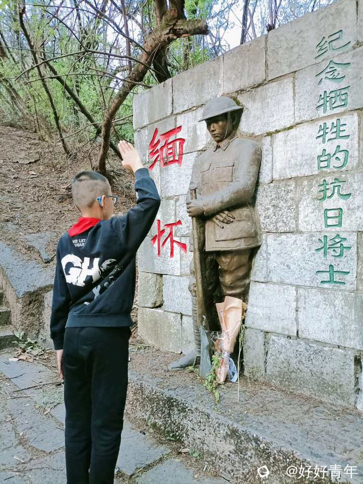 这一年11月10日是桂林保卫战80周年纪念日。在这个特殊的日子里,我们特意来到骝马山下,缅怀曾经在这里战斗牺牲的抗日将士,儿子站在士兵雕塑前敬了一个礼。这位士兵雕塑站立的姿势庄重而肃穆,仿佛在诉说着那段血与火的历史。