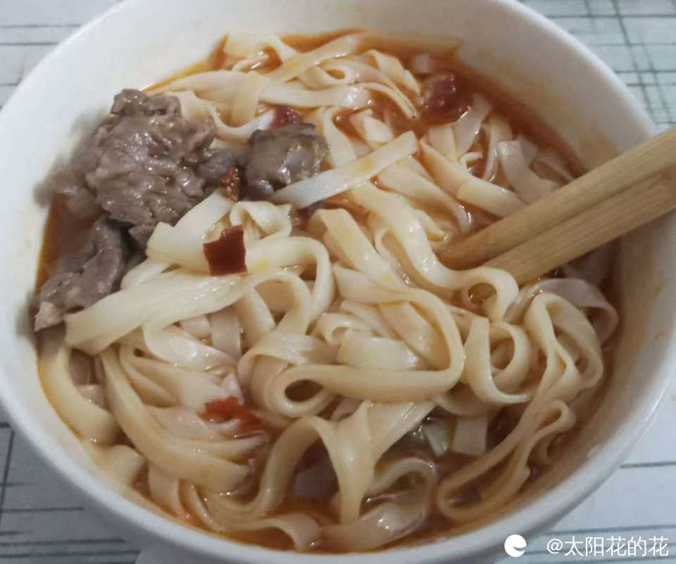 好久没吃麻辣的东西了,用火锅底料和牛肉煮面条当宵夜吃,感觉好好吃啊,就是我想吃的那种味道……