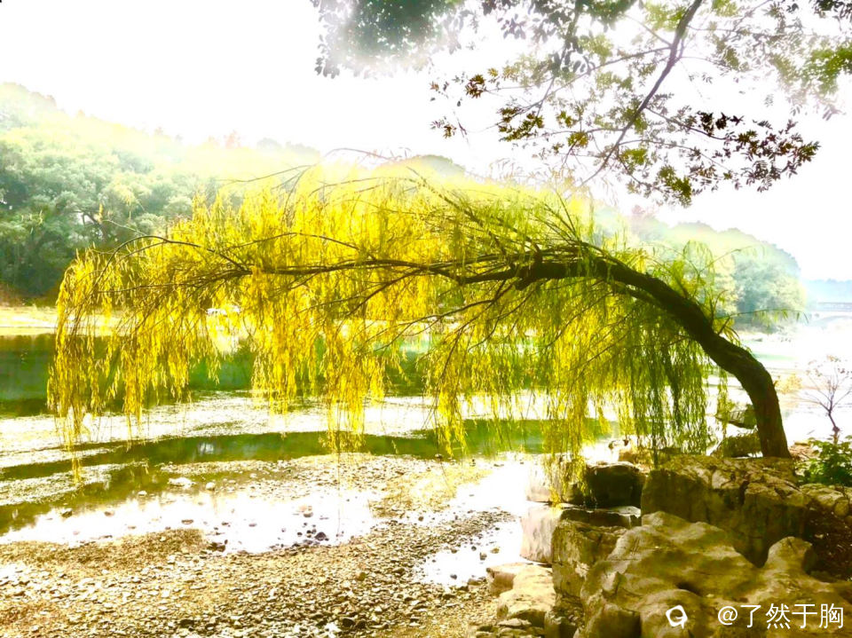 甘棠公园里,九曲桥的甘棠江边,有独立的一棵杨柳,