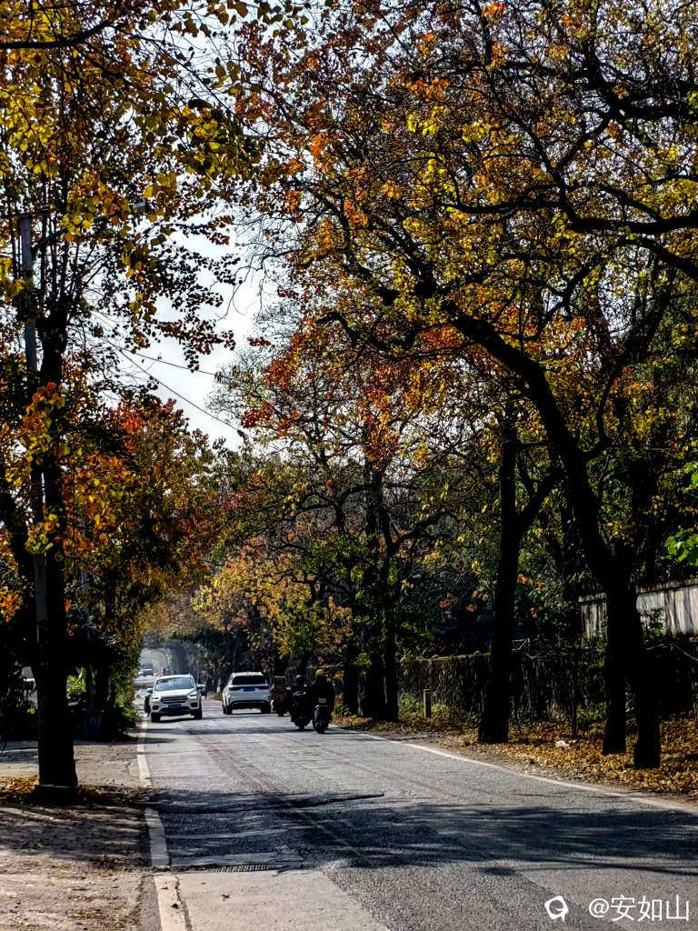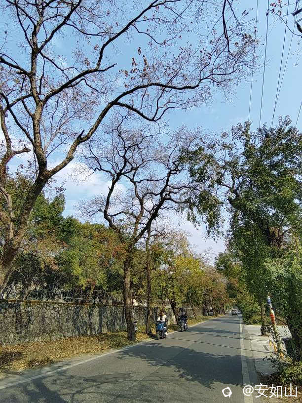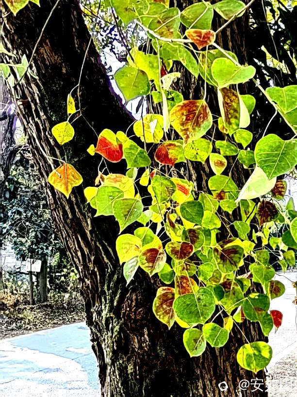 巾山路的乌臼树年复一年,长得又高又粗,技干自由弯曲伸展,显得苍劲有力,十分好看!最吸引我的是乌臼叶四季变化,春夏秋冬经历翠绿、深绿、金黄、残红变化,甚至子掉光,变成滿树的白色乌臼子,随寒风摇弋,像雪片飞舞也好美,好美!