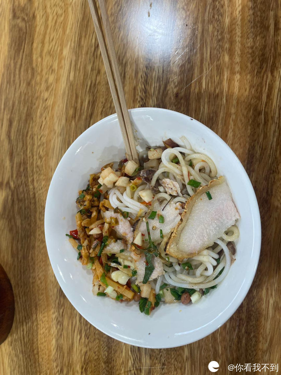 点了传统的锅烧牛肉配菜,这家店锅烧给得很多,油有点腻,下次可以提醒店家少放一些油,酸菜是中规中矩的水平,不抢米粉的味道,但芫荽是真的香,平时吃米粉不放芫荽的,但放葱花的时候带了一点芫荽,吃进去感觉好香,于是又去配菜区加了一点,哈哈