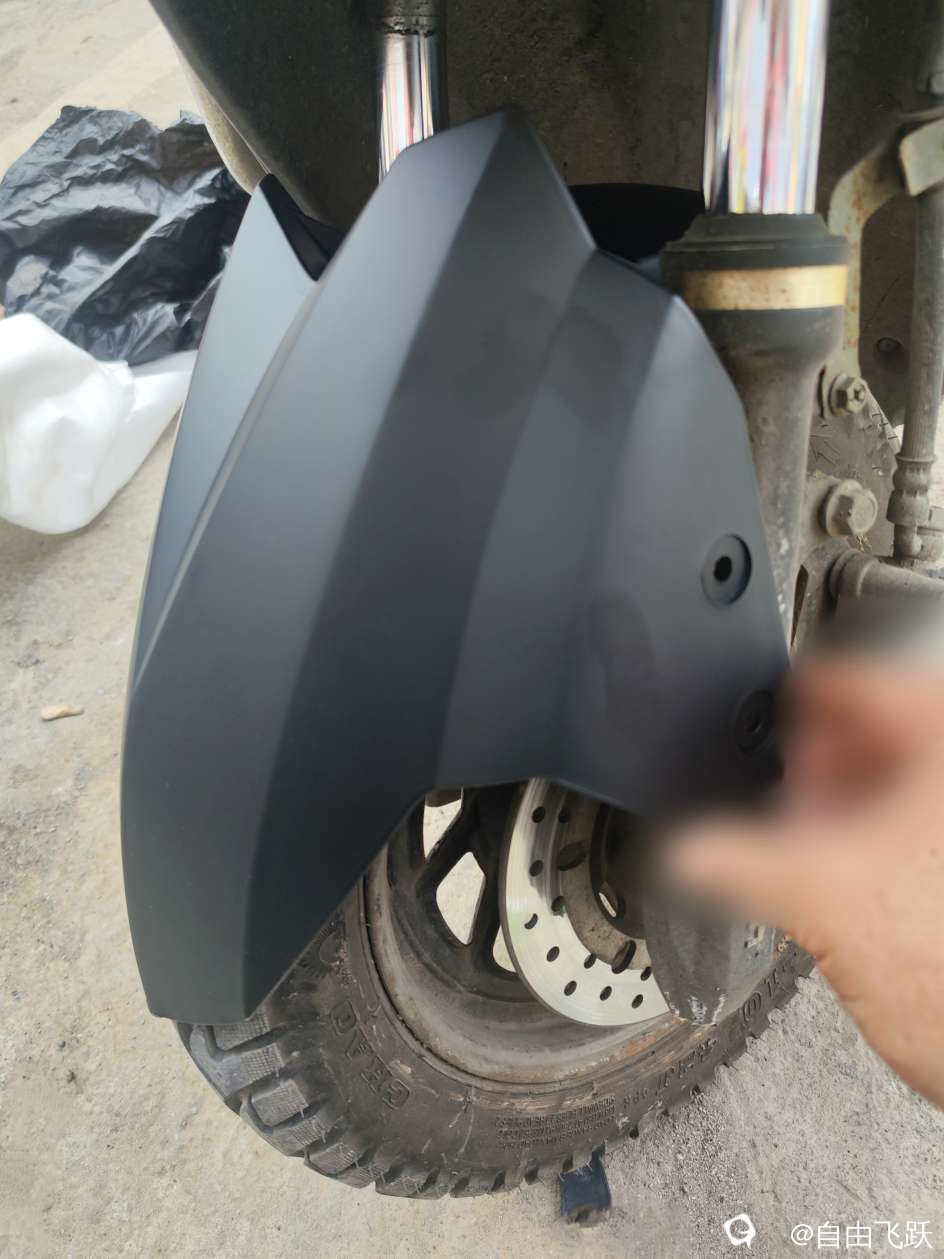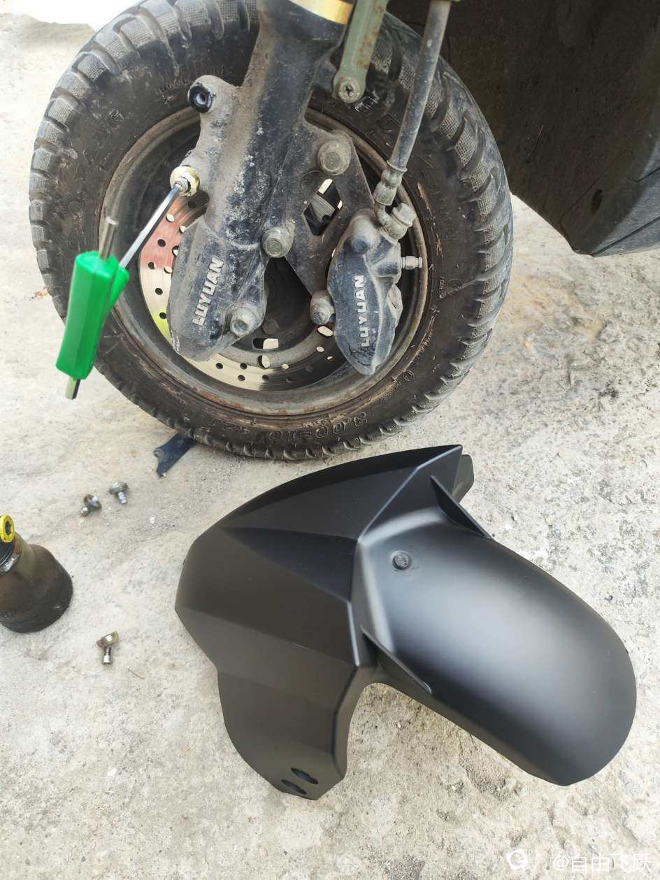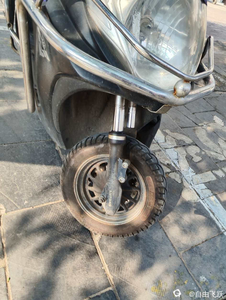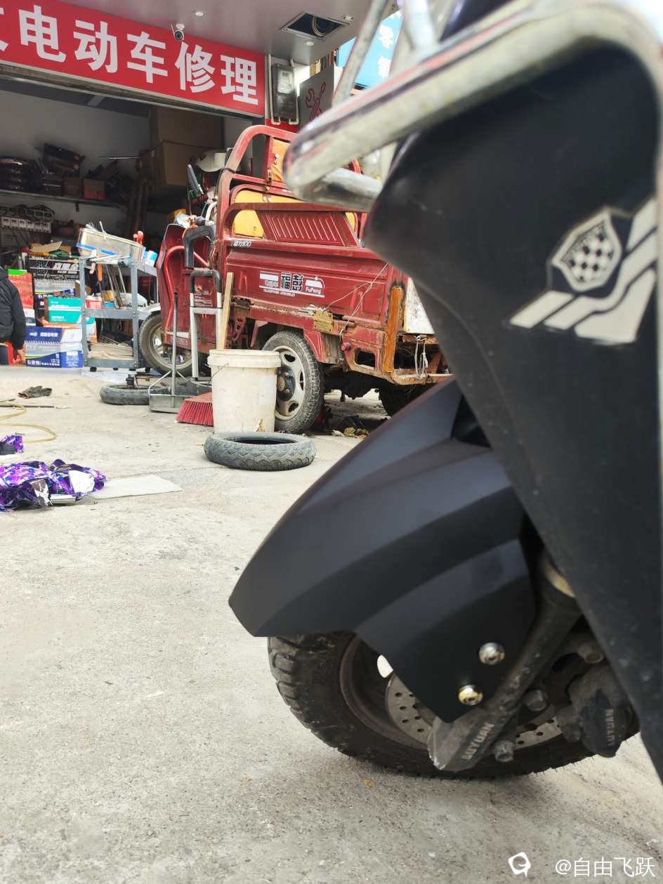 有一天落雨天,我骑着小电驴从瓦窑回家,一不留神陷进路中水坑,小电驴顿时不受控制乱窜起来,撞到路边栏杆把前轮挡泥板碰烂了,只好沿路找修理店问有没有合适的挡泥板卖。