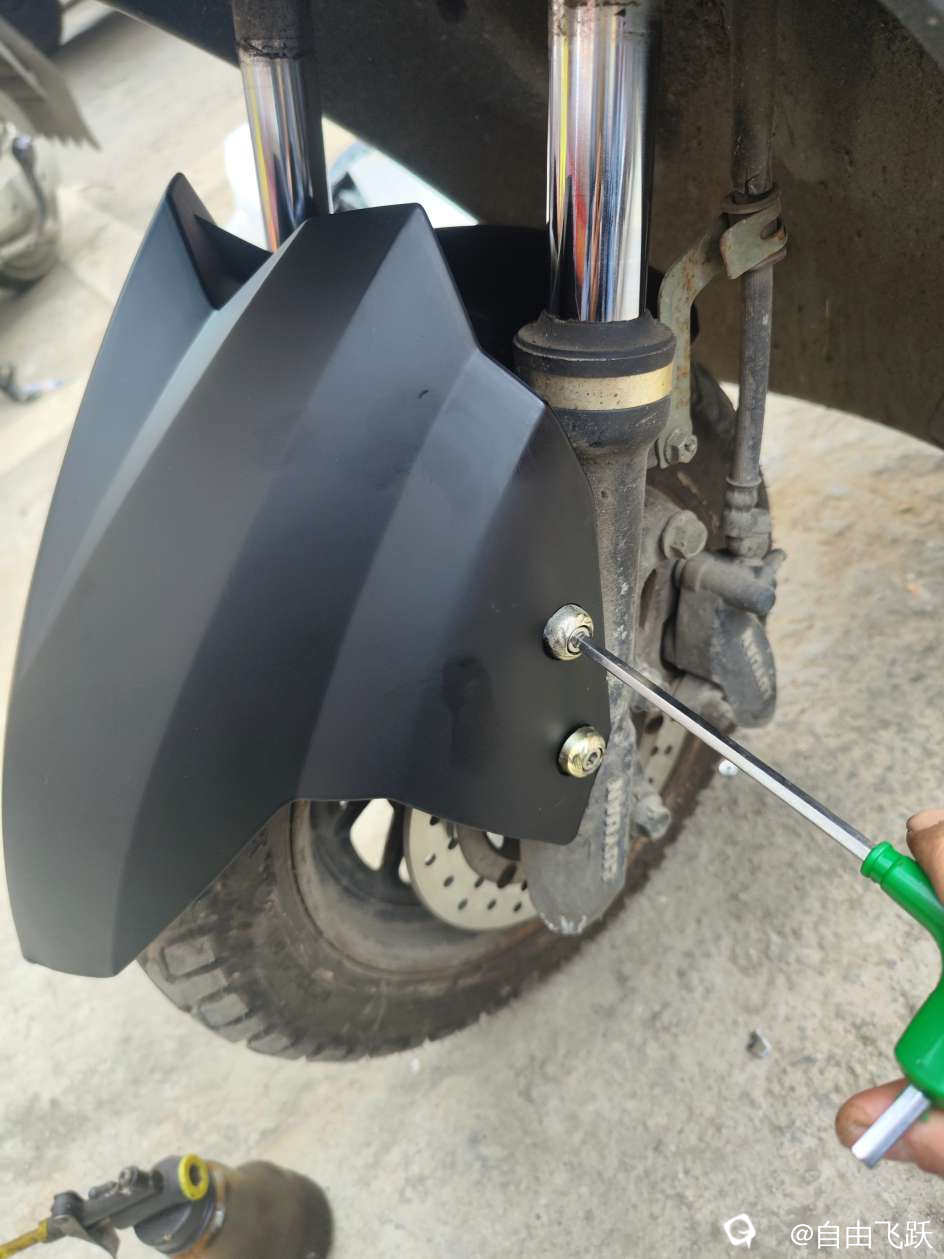 于是下了一个订单,今天收货,去路边找个修理店借把工具用一下,几分钟就上好挡泥板,效果很完美,就是太新了,老车太老了……