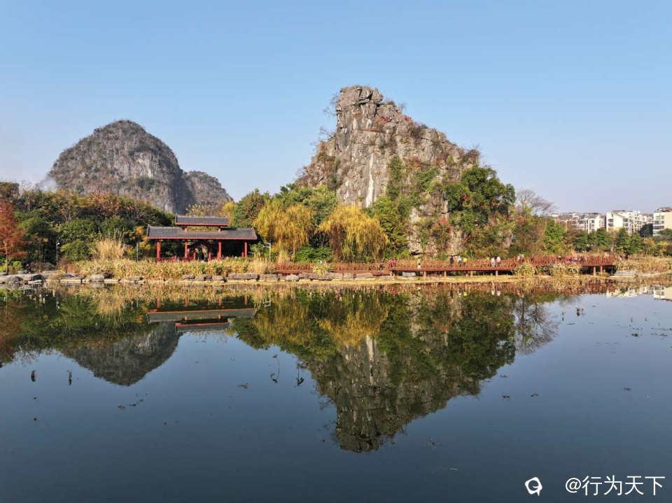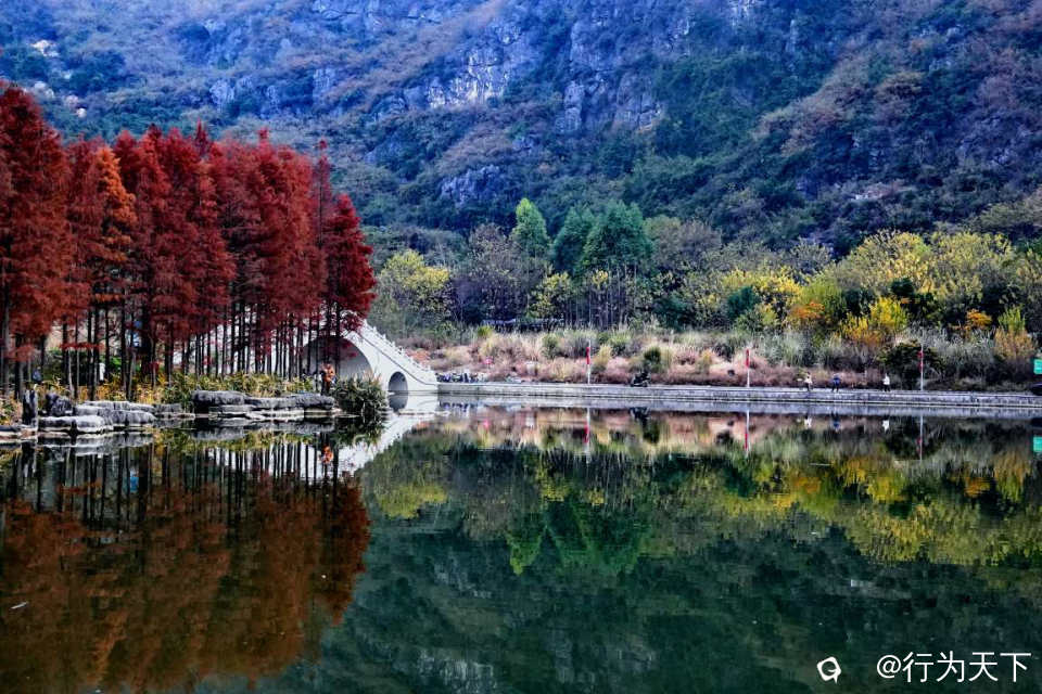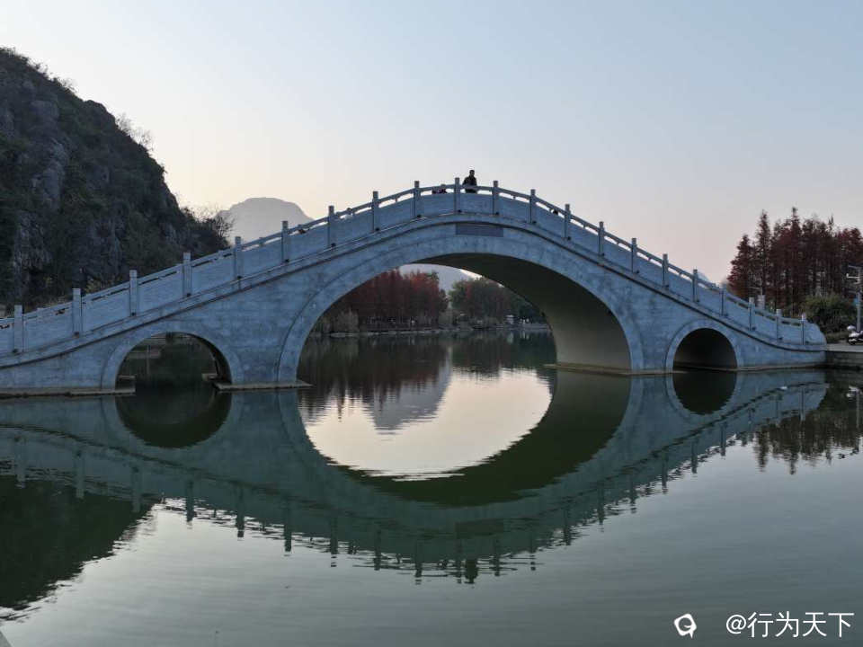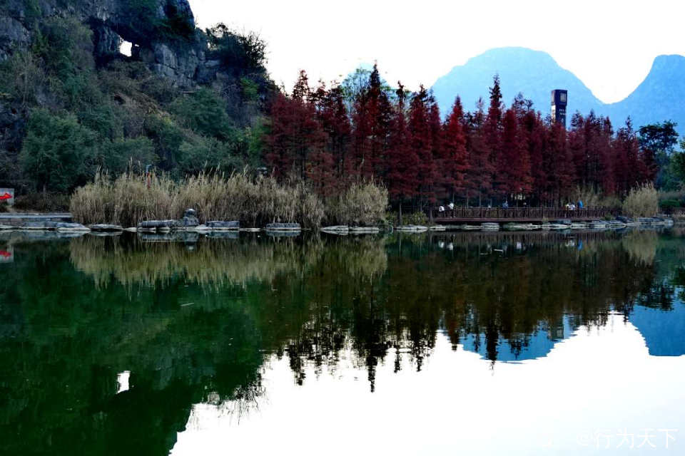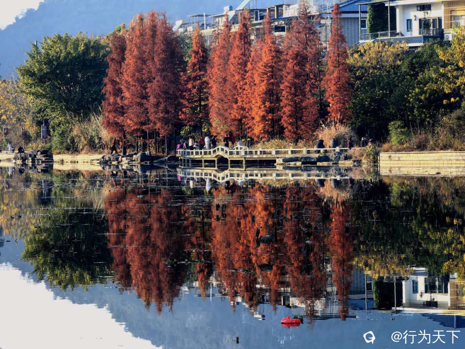 桂林桃花湖景公园的水杉红了,状元桥与水杉林倒影绝美,你确定不来打卡吗?这里不需要门票,停车方便。
