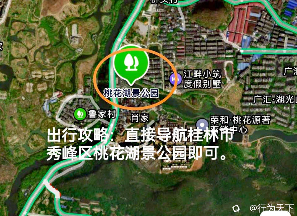 桃花湖景公园在桂林市的西北部,离市中心区域大约5公里左右,位于桃江路肖家村西南侧约60米。