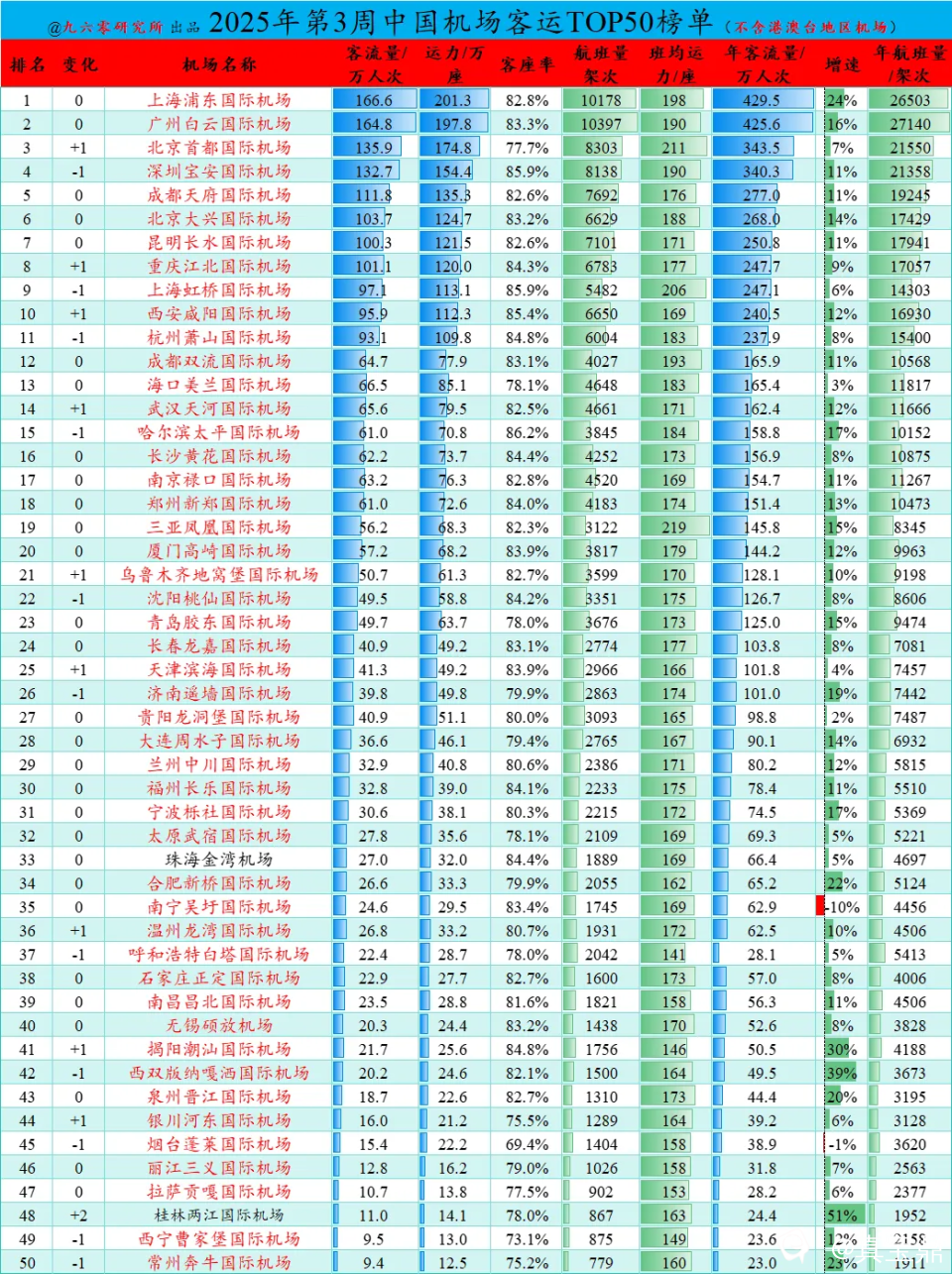 机场排名上升2位,位列全国机场第48名。