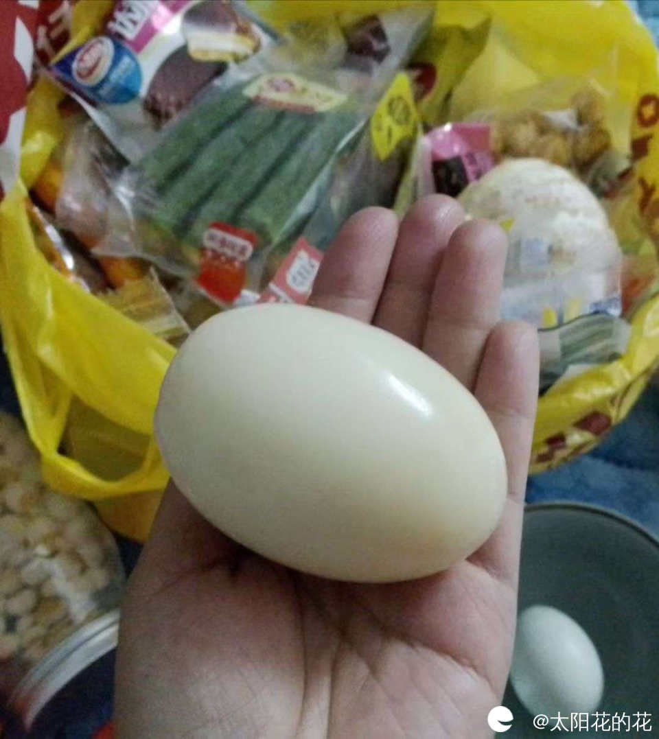 晚上的宵夜吃鹅蛋,小朋友第一次吃鹅蛋,她看到鹅蛋那么大觉得好稀奇,我说是白天带你去看的鹅下的蛋,她吃的津津有味……