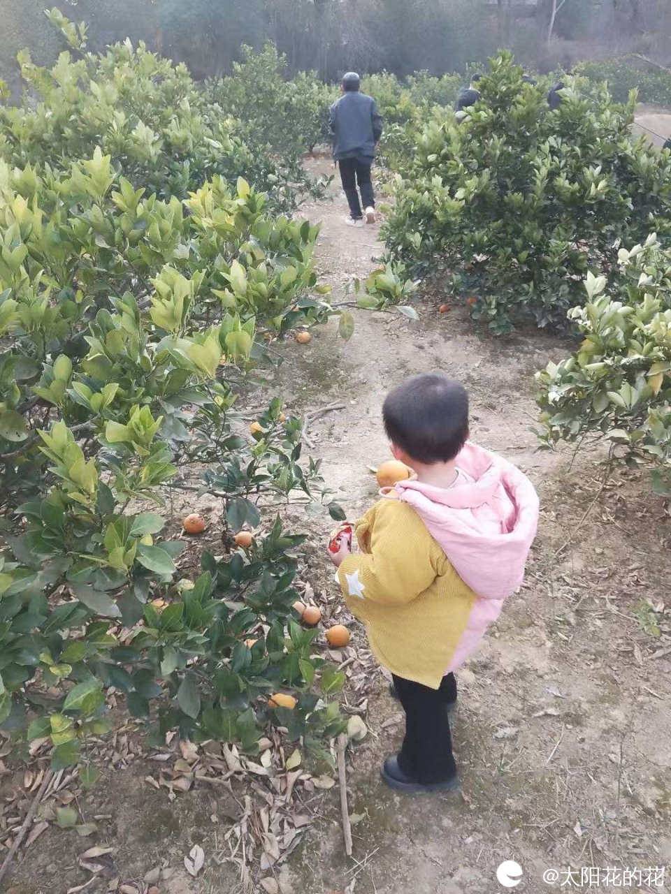 另外一个亲戚第二天也过生日摆酒,去亲戚家玩跟着亲戚去果园摘橙子吃,一大群人在一起好热闹啊,这个院子好大啊,摆酒直接就在院子里砌灶煮菜吃,后面还有一块比这个院子大一半的空地拿来养鸡养鸭种果树的,真羡慕他们在城市里买了房子在农村还有这么大的宅基地,以后在这里砌个别墅,在院子里种点花花草草然后弄张喝茶的桌子在院子里喝茶赏花,这样的生活真惬意啊……