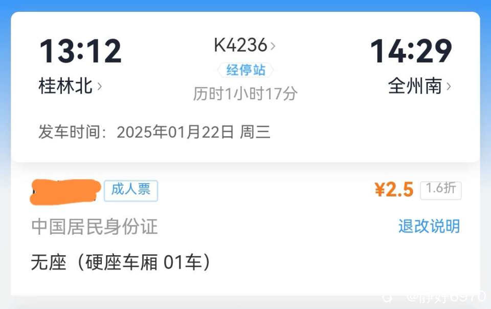 运气不错,几天前买票显示售罄,昨天大清早起来刷火车票,显示有无座票预售,于是赶紧抢了一张2.5元的火车票,这个价格顿时让我感觉回到了上个世纪八十年代,现在坐公交车都要2元。