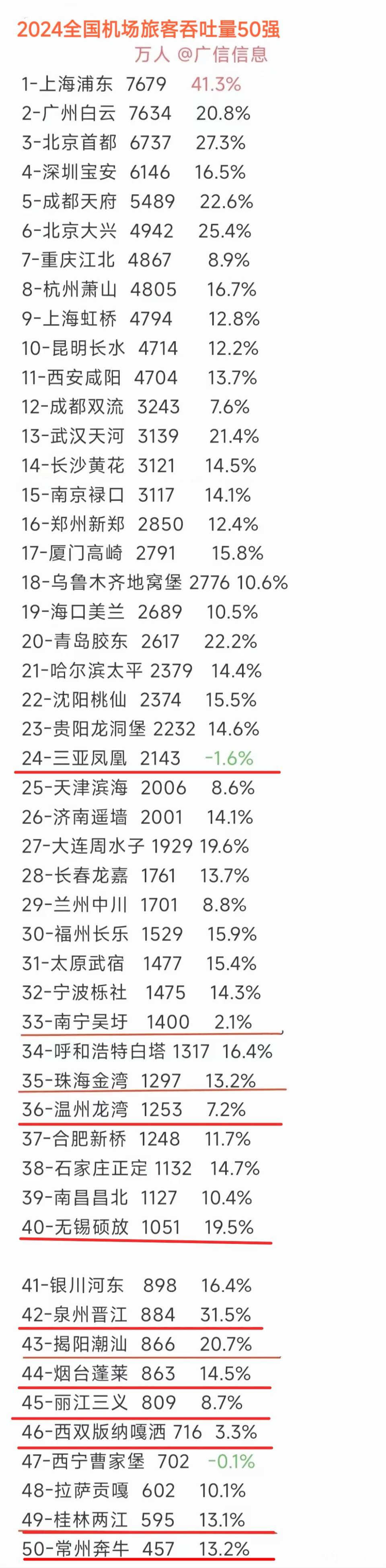 [新闻爆料] 11个普通地级市进入2024全国机场50强,桂林第49