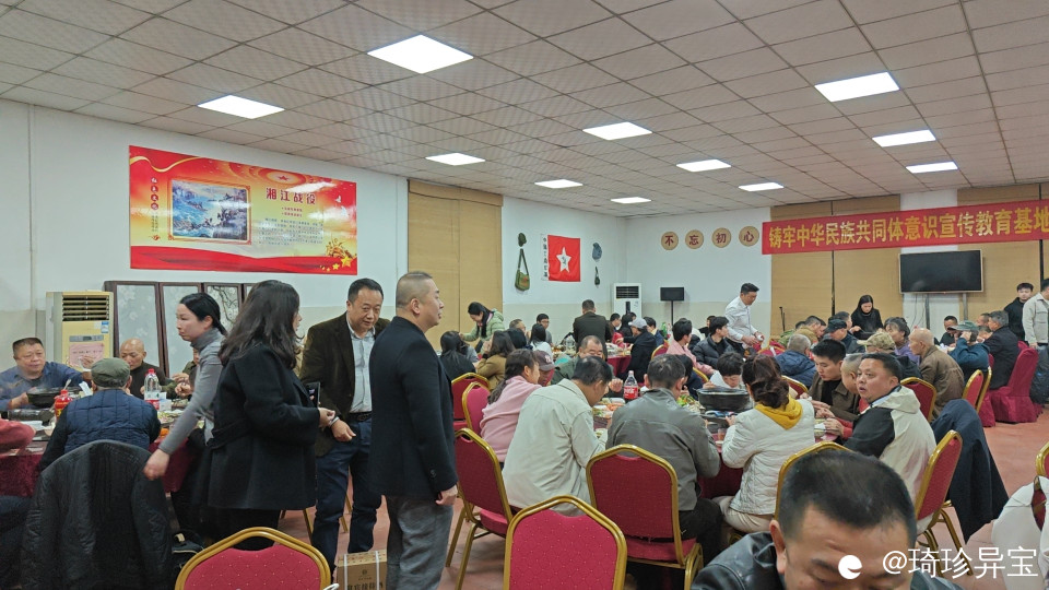 前天吃到的杀猪菜是在甲山附近的红色基地举办的,当时是一个揭牌仪式,领导讲完话之后,参观了会场,就开始进入宴席了。