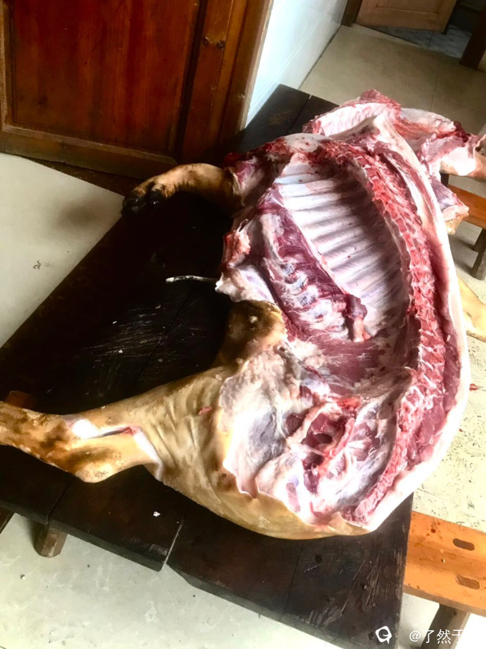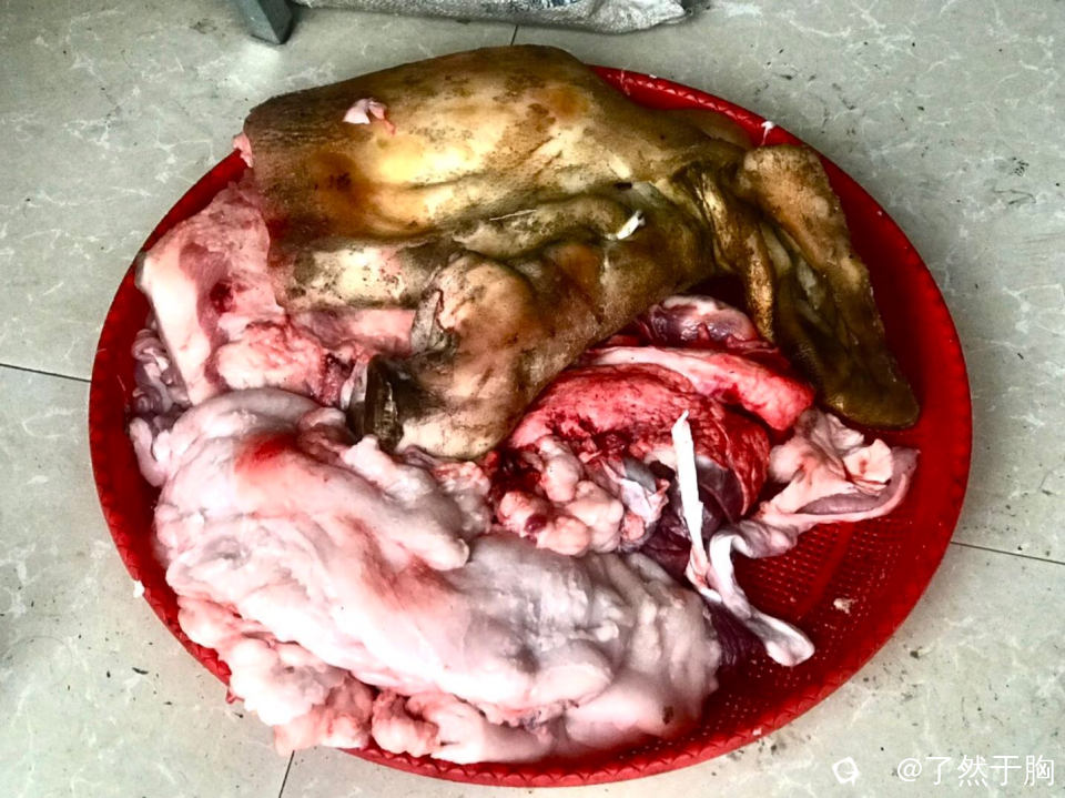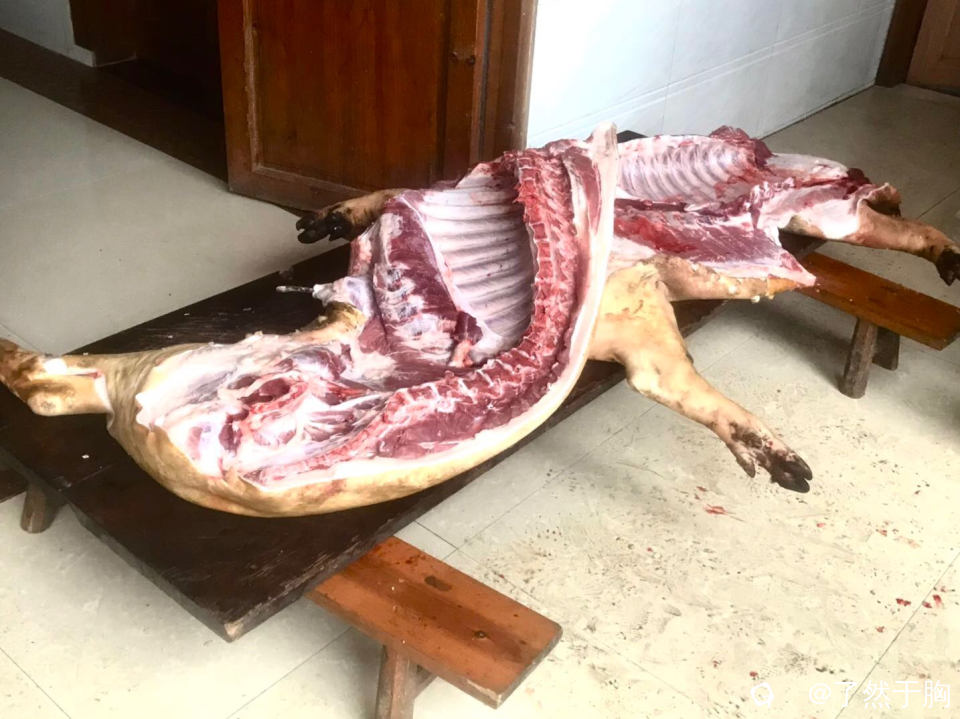我们预约宰杀的年猪,饲养了近十个月,绝对是纯粹的土猪,已经接近野猪的肉质了。