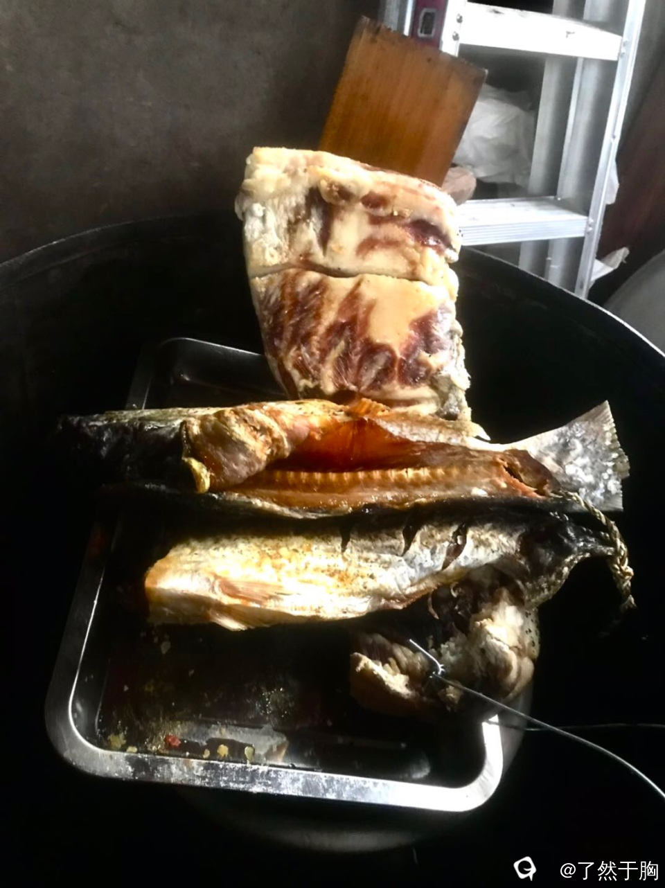 我们在农家的火塘里进行了不一样方式的烧烤,口齿留香,味美不可言。至于大家集中品味喝酒吃肉的大锅杀猪菜,就不再上照片吊大家的味蕾了。