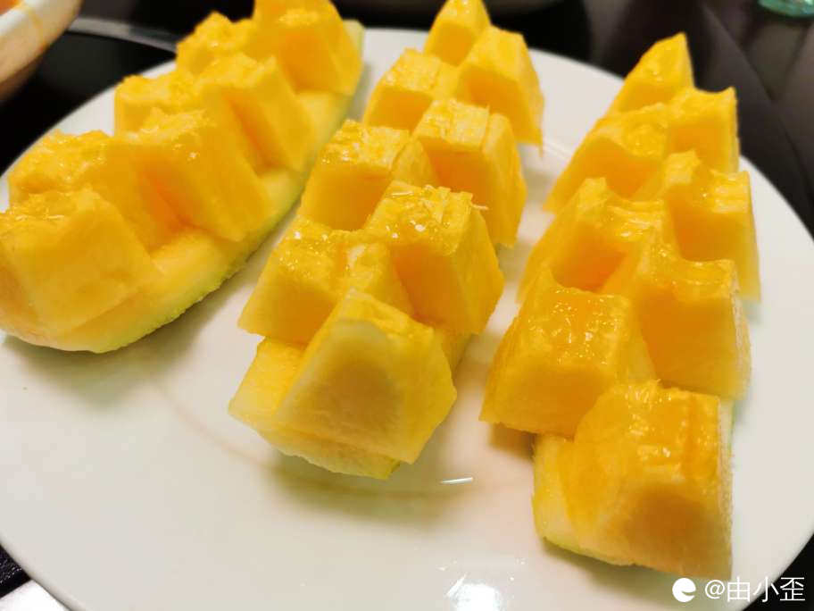 送了哈密瓜,切得不错。