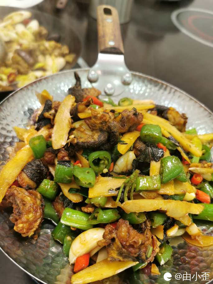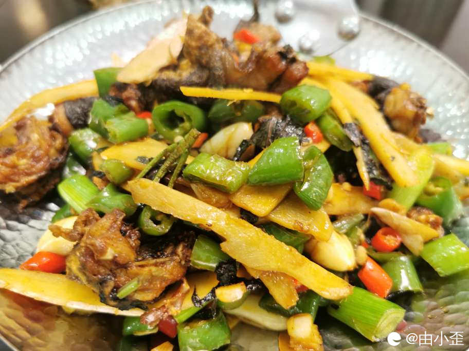紫苏仔姜爆田鸡,火辣火辣的,吃起来爆爽。