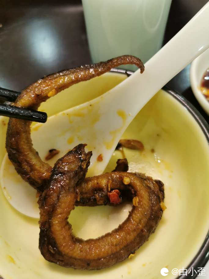 香辣手撕鳝,超级大一条,整个碗都装不下,做得很干爽,用手一撕,肉骨分离,再来几条。