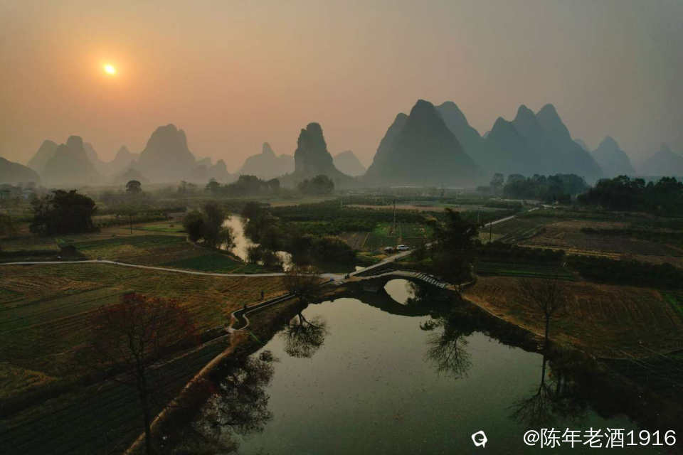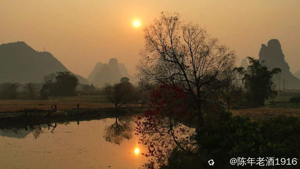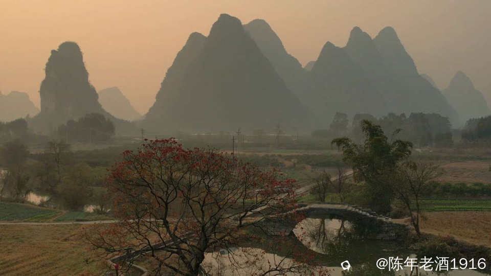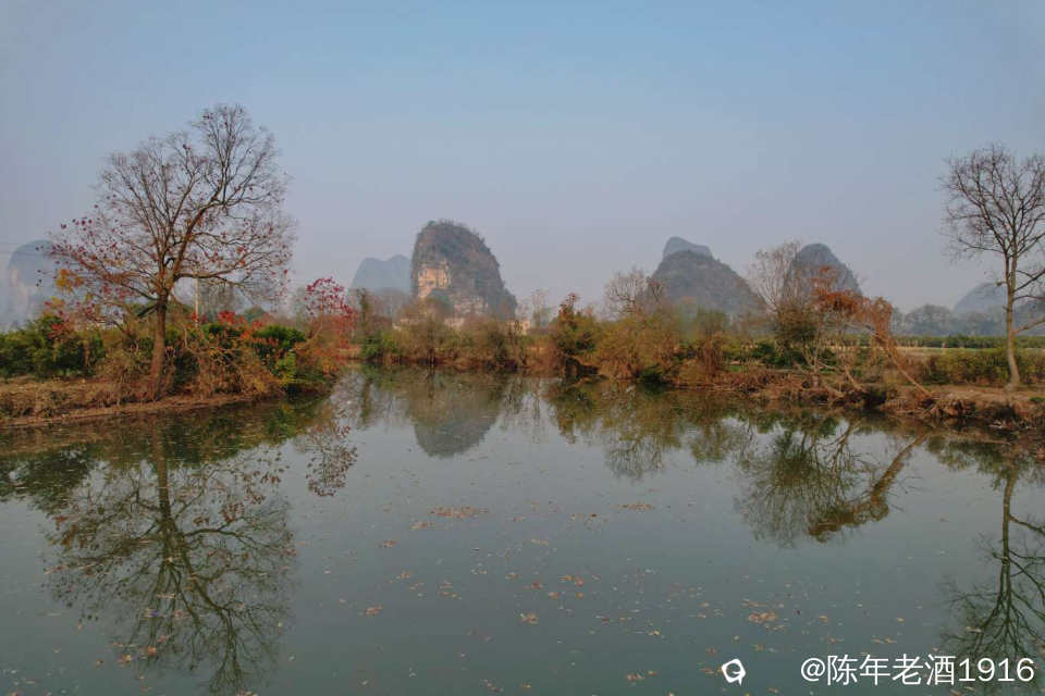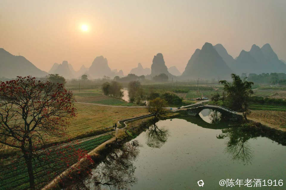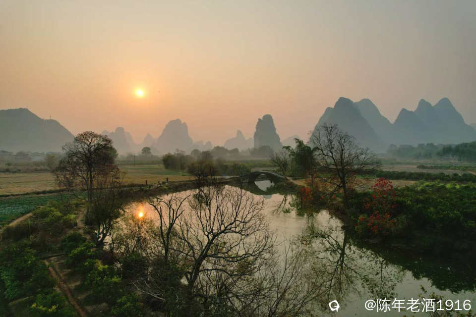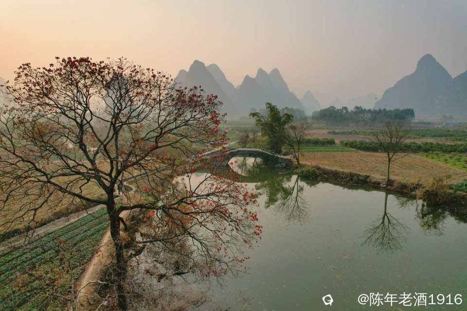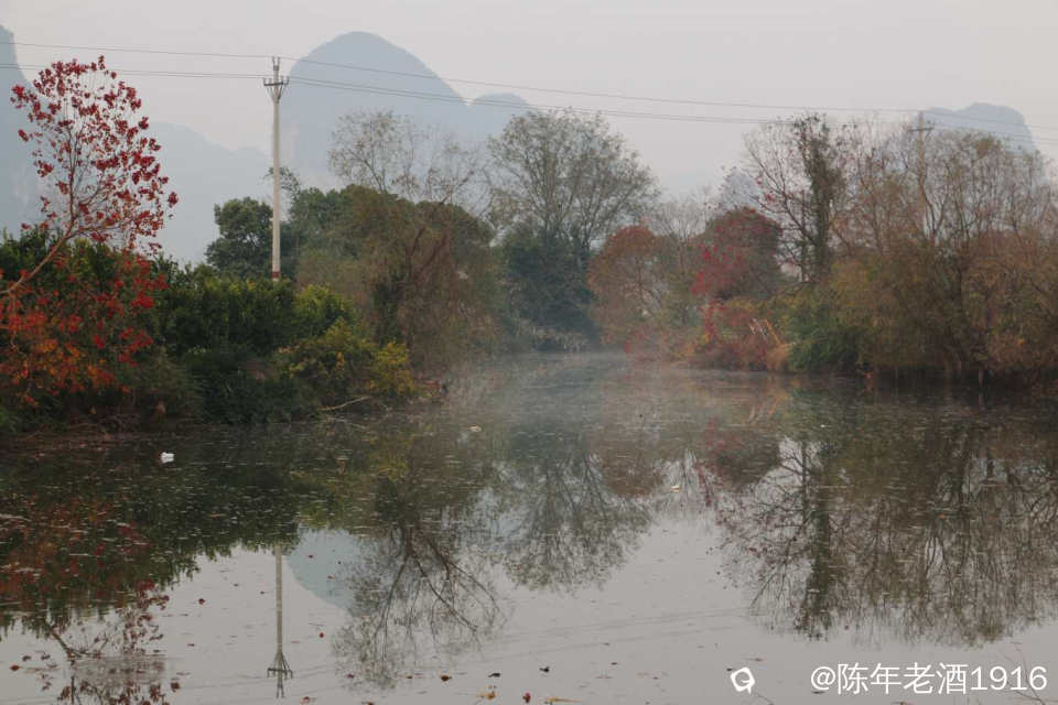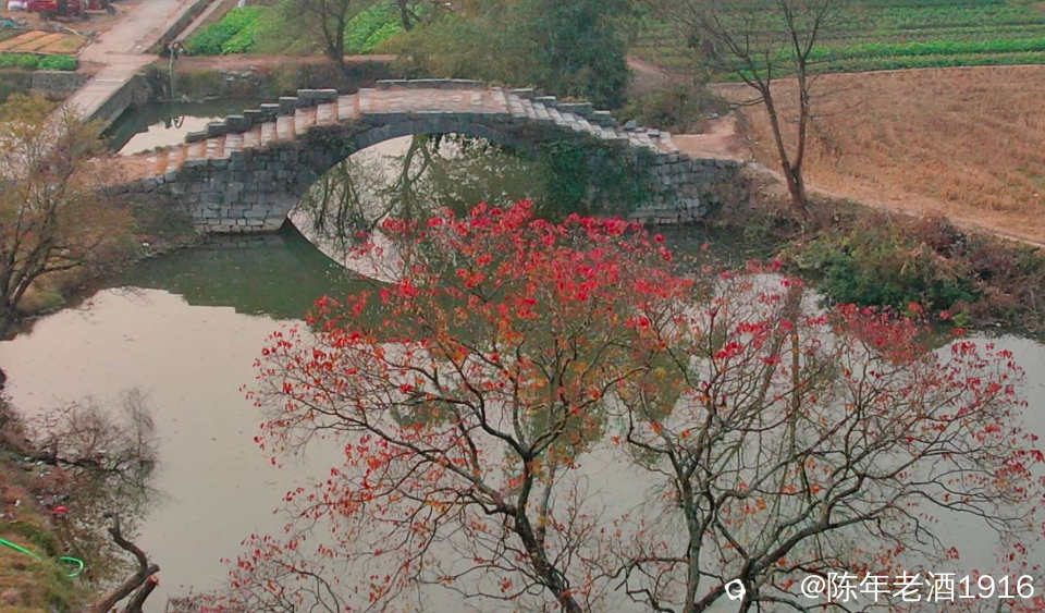 冬日里的一天清晨,看天气温差较大而且是晴天,于是大清早往会仙铜桥赶,就想亲见薄雾缭绕古石桥的山水风光。可现实并未如愿,当天早晨尽管水面泛着一层薄雾,岸边几蔸乌桕依稀可见的红叶,但由于雾霾太重,太阳迟迟未上来,薄雾很快便消失殆尽,8点多钟,柔和的红太阳才懒洋洋的从山尖冒头出来。既然来了,怎么也要拍几张吧。