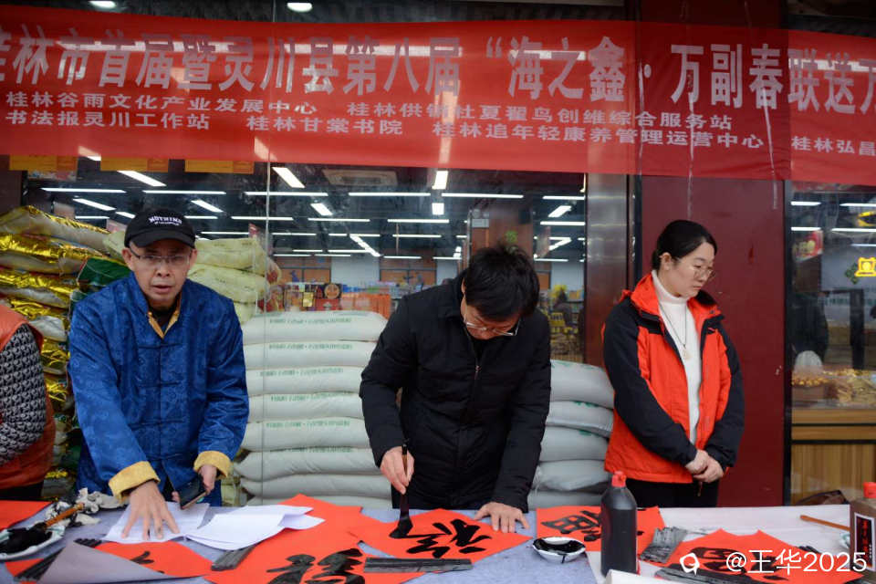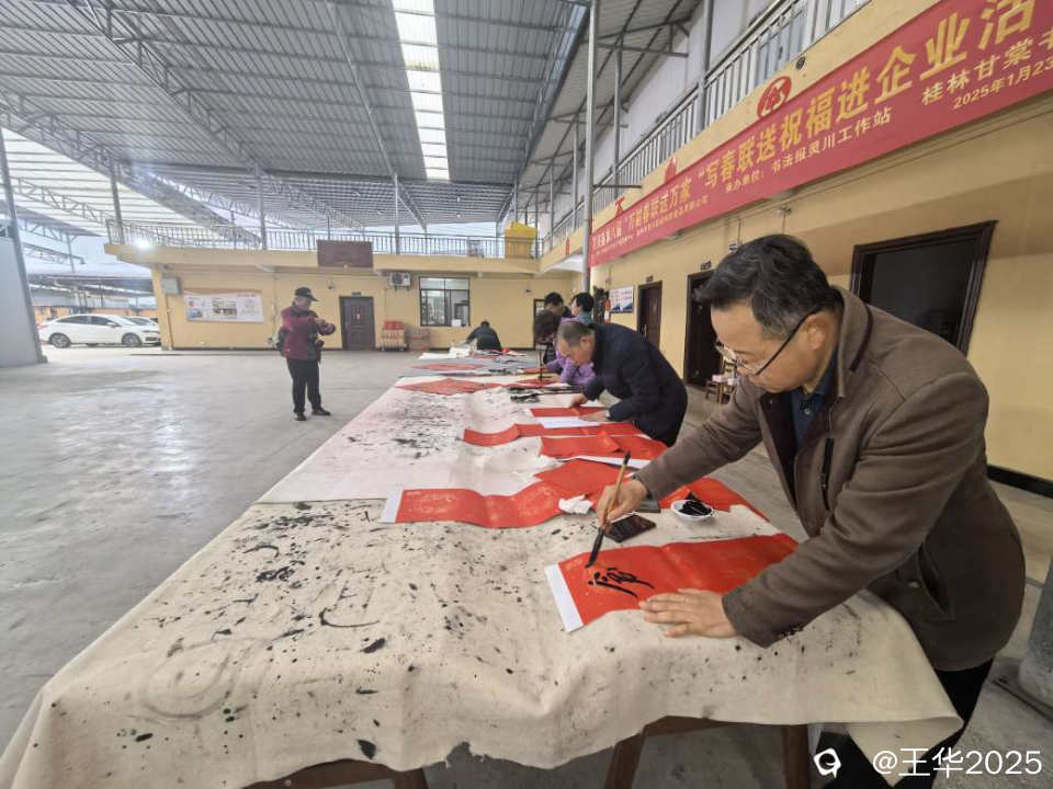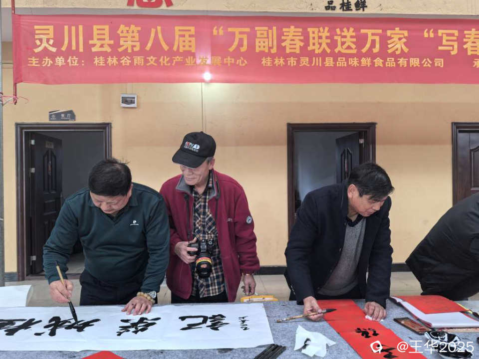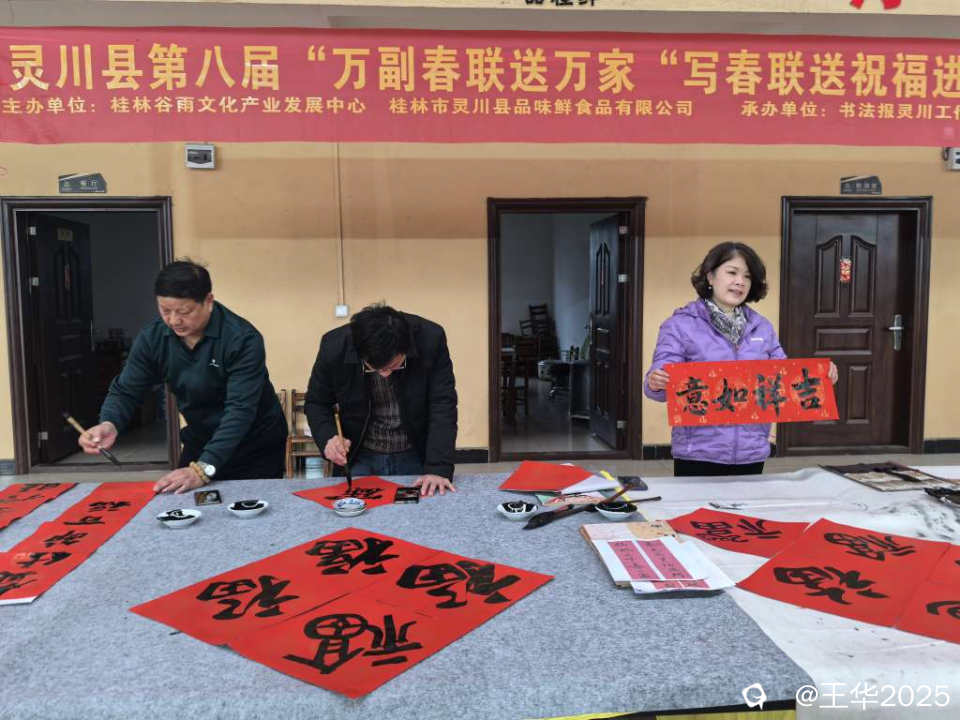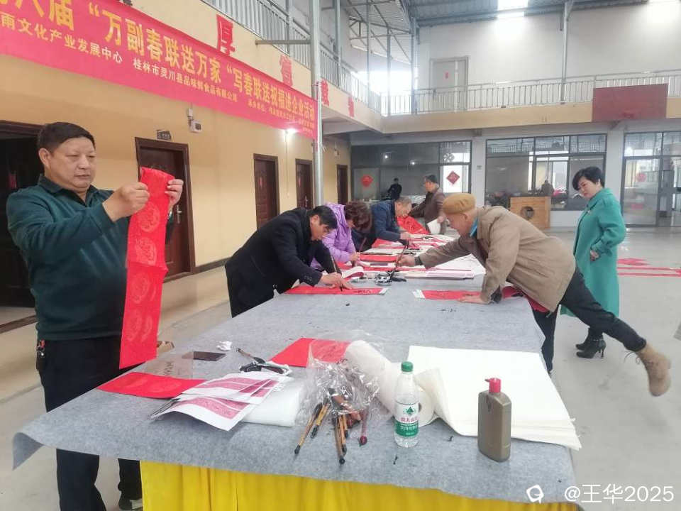 谷雨文化传播: 2025桂林市首届暨灵川县“海之鑫·万副春联送万家”公益文化活动在有关单位、领导和各界书画艺术家们大力支持和热心参与下,于1月26日在桂林甘棠书院(谷之雨教育培训学校)圆满收官,活动为期10天,开展写春联送祝福6场次,参与书画家180多人次,送出春联4600余副。 1月26日圆满收官之日,活动主办、承办方以及协办方代表在书法报桂林灵川工作站举行活动圆满举办迎新春联谊活动,为活动画上圆满句号。