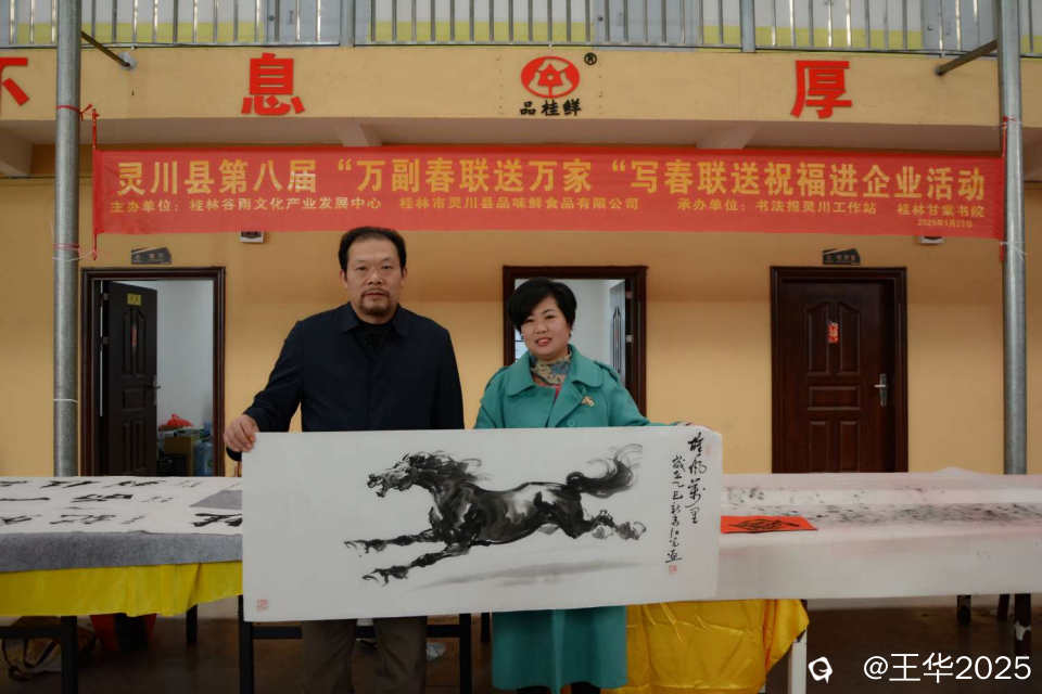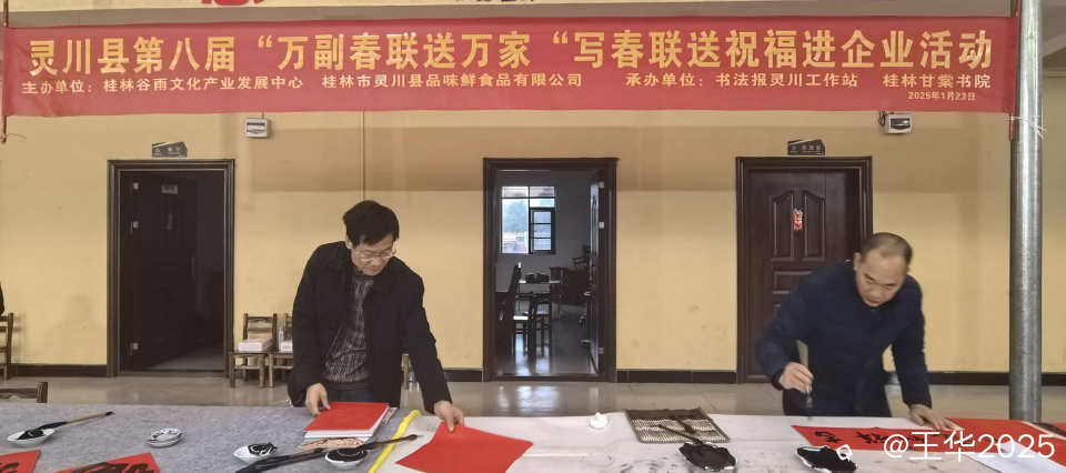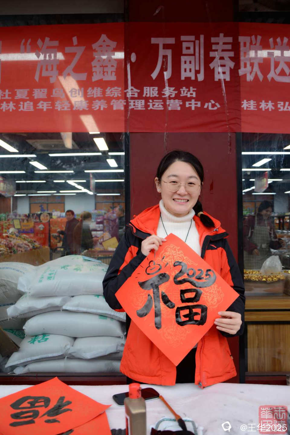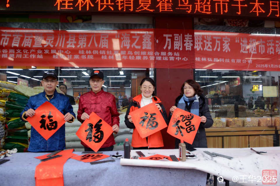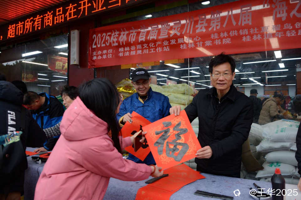 谷雨文化传播: 2025桂林市首届暨灵川县“海之鑫·万副春联送万家”公益文化活动在有关单位、领导和各界书画艺术家们大力支持和热心参与下,于1月26日在桂林甘棠书院(谷之雨教育培训学校)圆满收官,活动为期10天,开展写春联送祝福6场次,参与书画家180多人次,送出春联4600余副。 1月26日圆满收官之日,活动主办、承办方以及协办方代表在书法报桂林灵川工作站举行活动圆满举办迎新春联谊活动,为活动画上圆满句号。