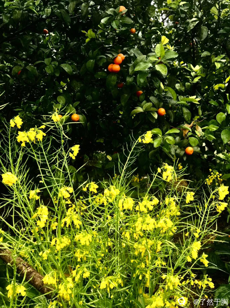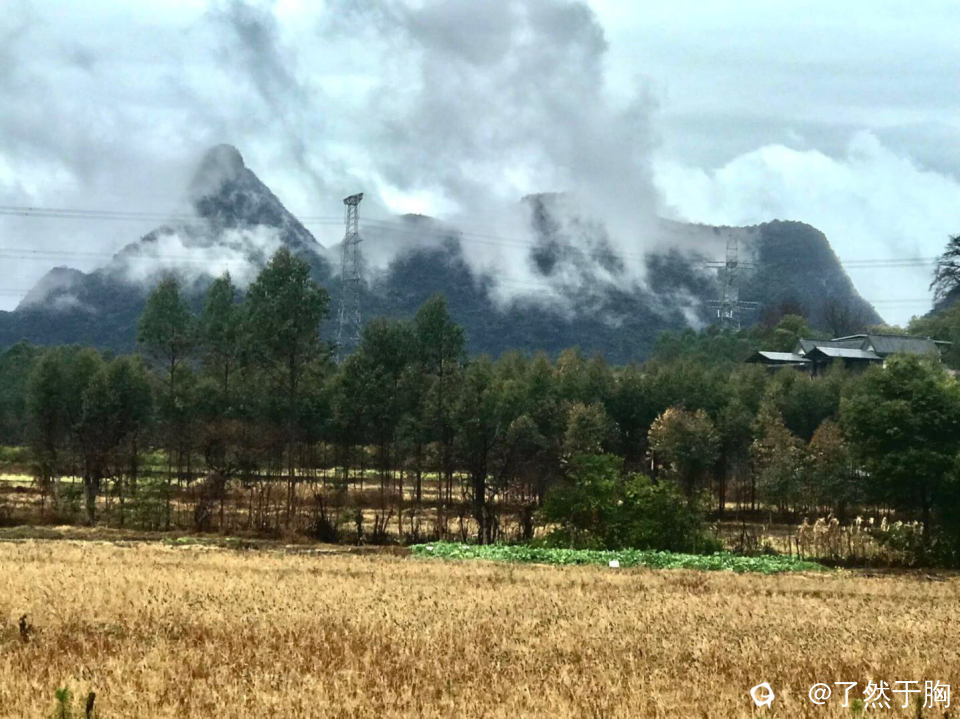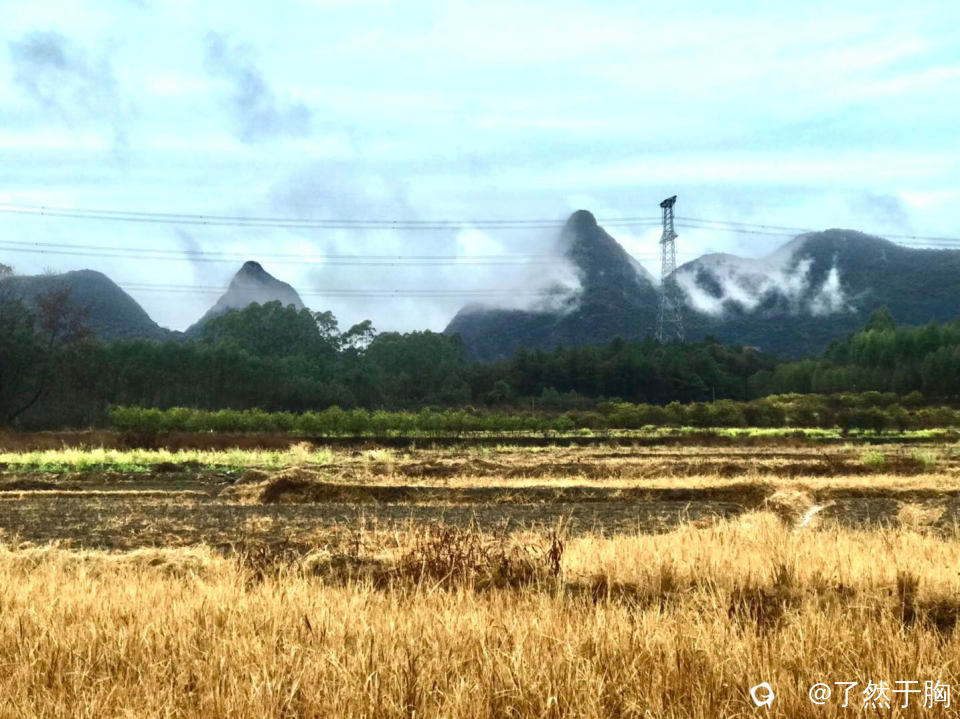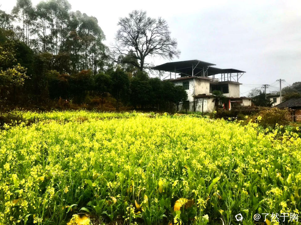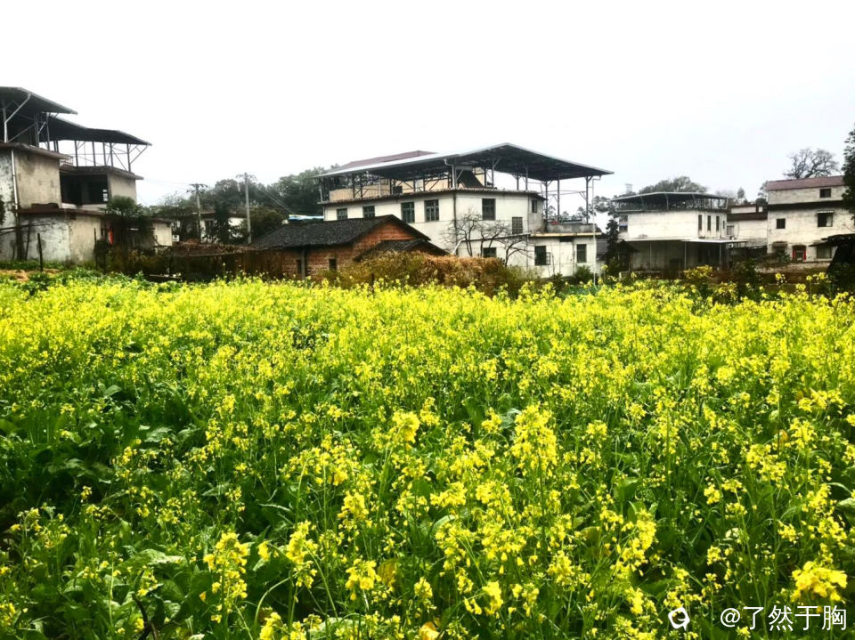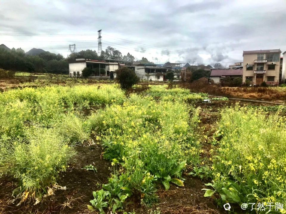 远看山峦云雾缭绕,近看田野橘黄的枯草,碧绿的疏菜,金黄的油菜花,以及犹如画中的村民的楼房亭阁,无不让人心旷神怡。