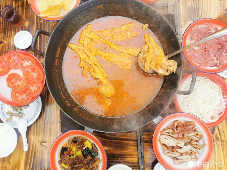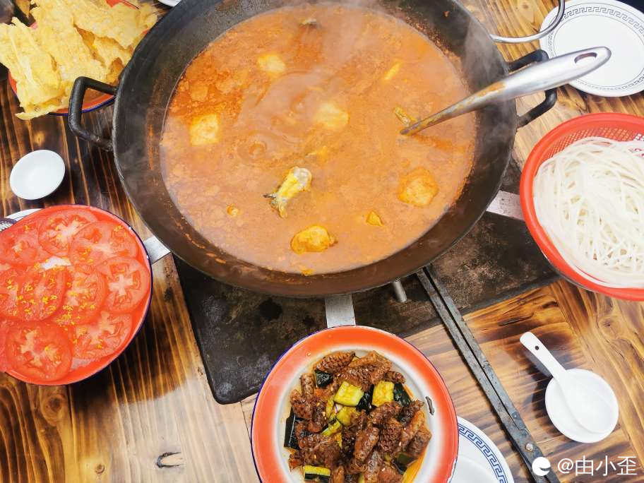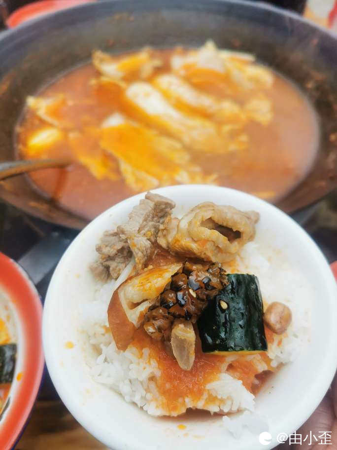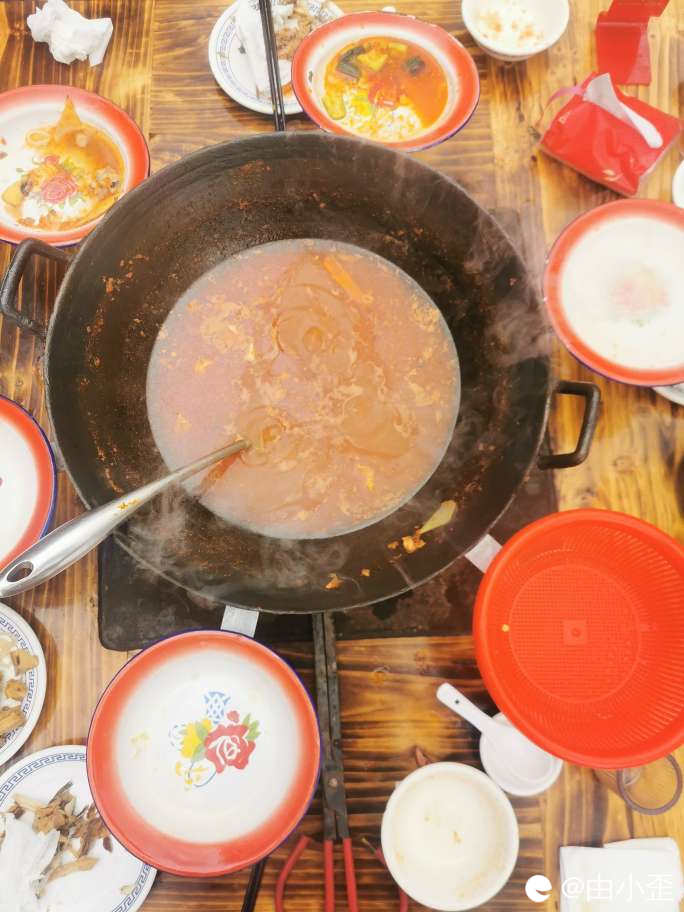 重头菜来了,番茄土鸡烫火锅,其实火锅比照片拍起来还要大,里面放有:土鸡、手工豆腐圆子、生态土黄鳝。