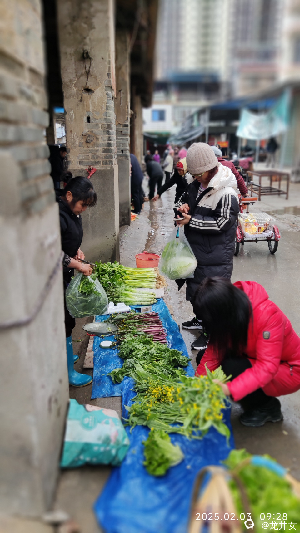 今日,大年初六,又是立春。赶圩卖菜的很少,买菜的也很少。今天蛮冷,北风蛮大,下着小雨,卖点菜,蛮辛苦。